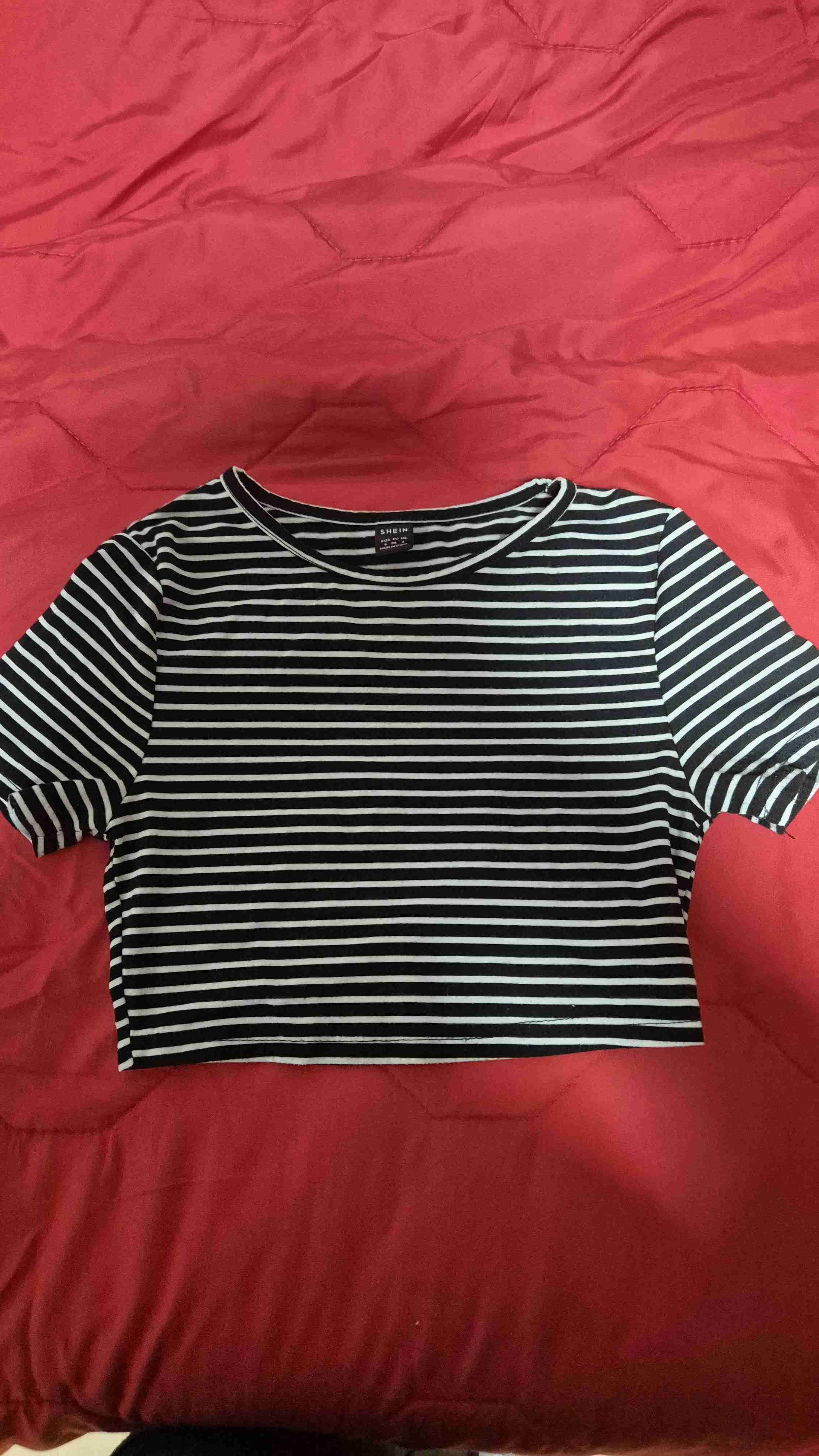 Camiseta rayada corta negra talla S