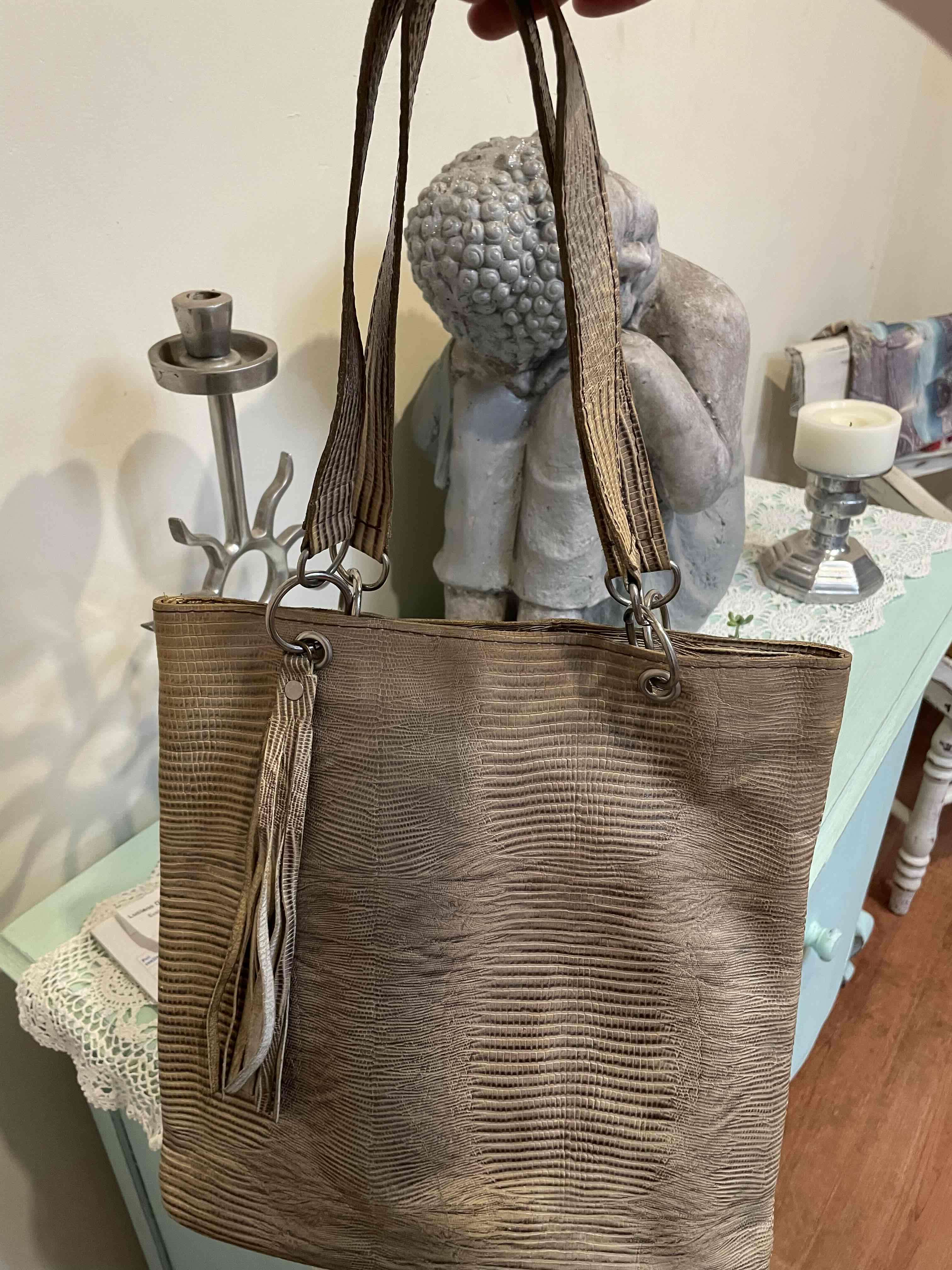 Cartera beige de cuero con textura