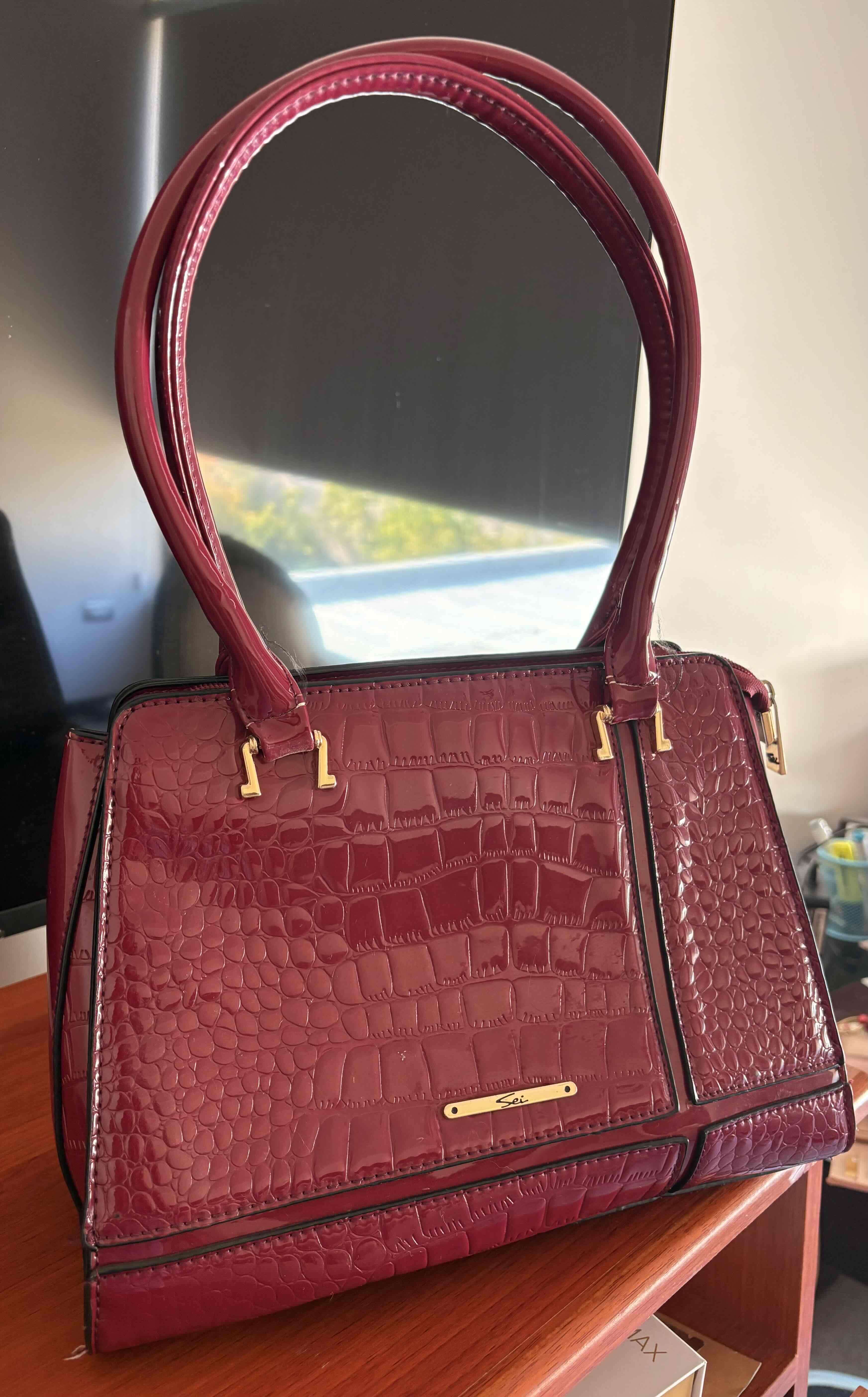 Elegante cartera color burdeo. En buen estado, ideal para uso diario o eventos especiales. Marca Sei.