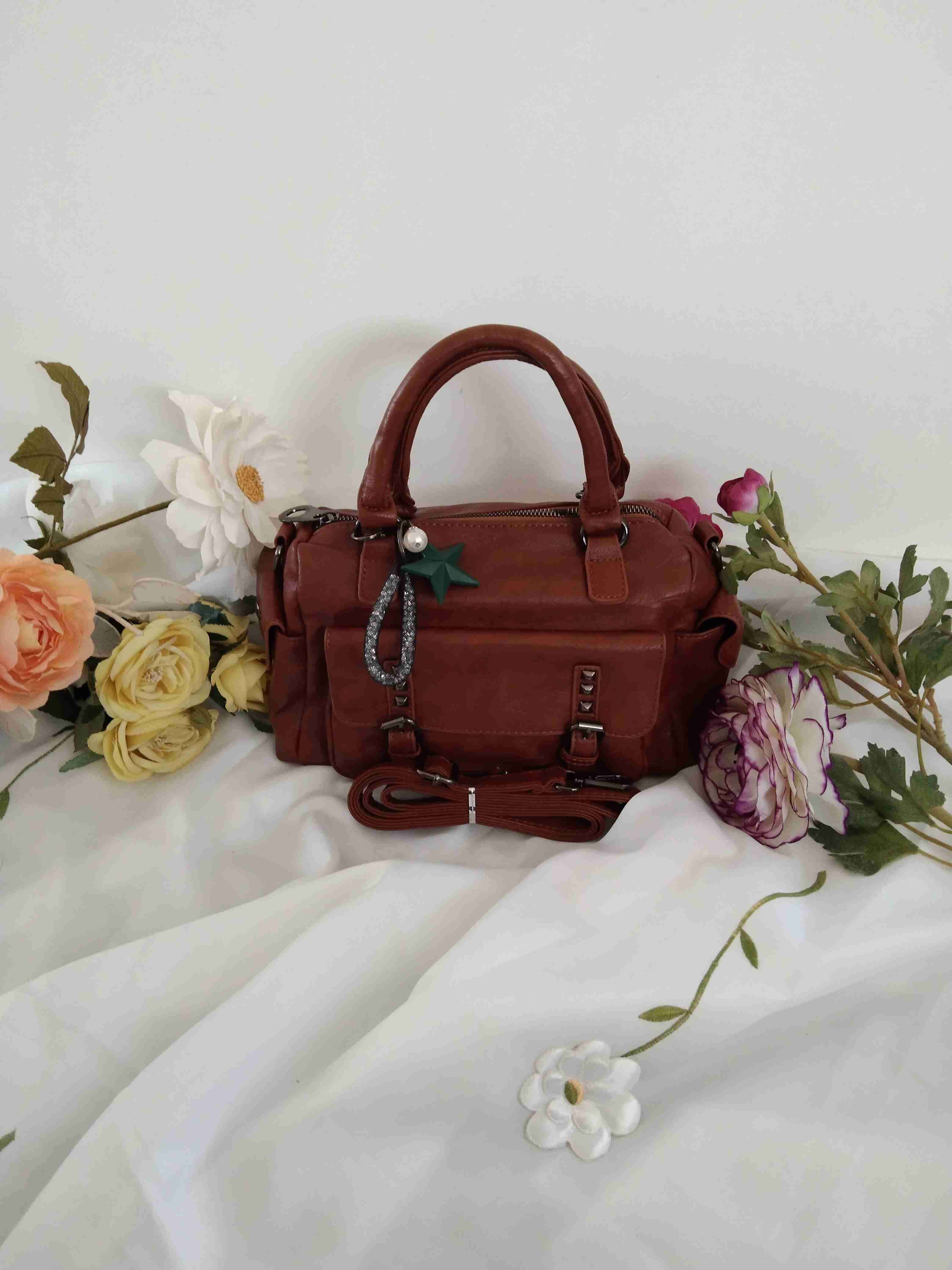 Cartera de ecocuero en tono camel ideal para uso diario. con charms incluido está totalmente nueva.