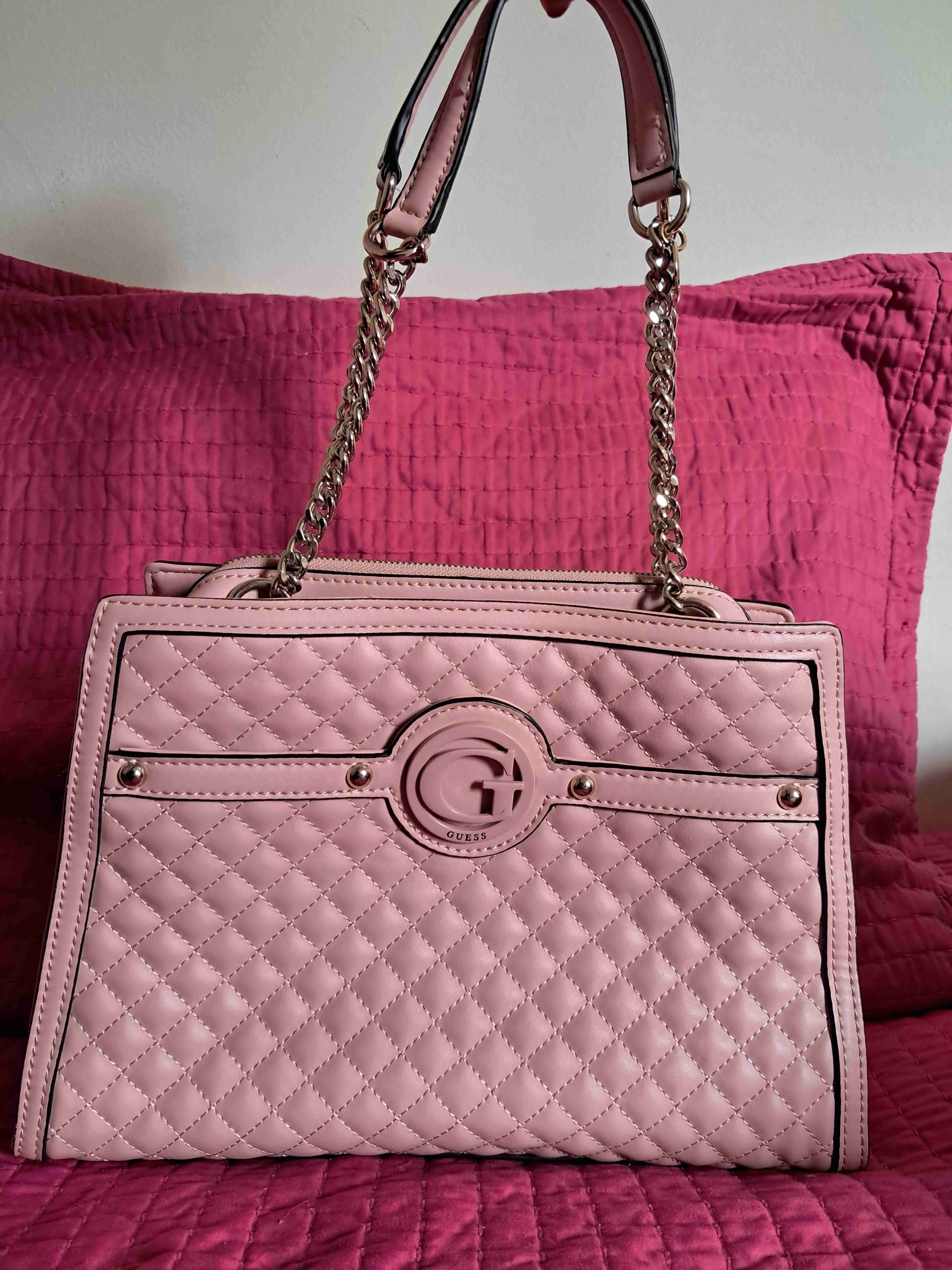 Cartera Guess Rosa, tiene 3 usos (para trabajo de oficina), fue comprada en remate asi que tiene 1 detalle, está como nueva y muy espaciosa!