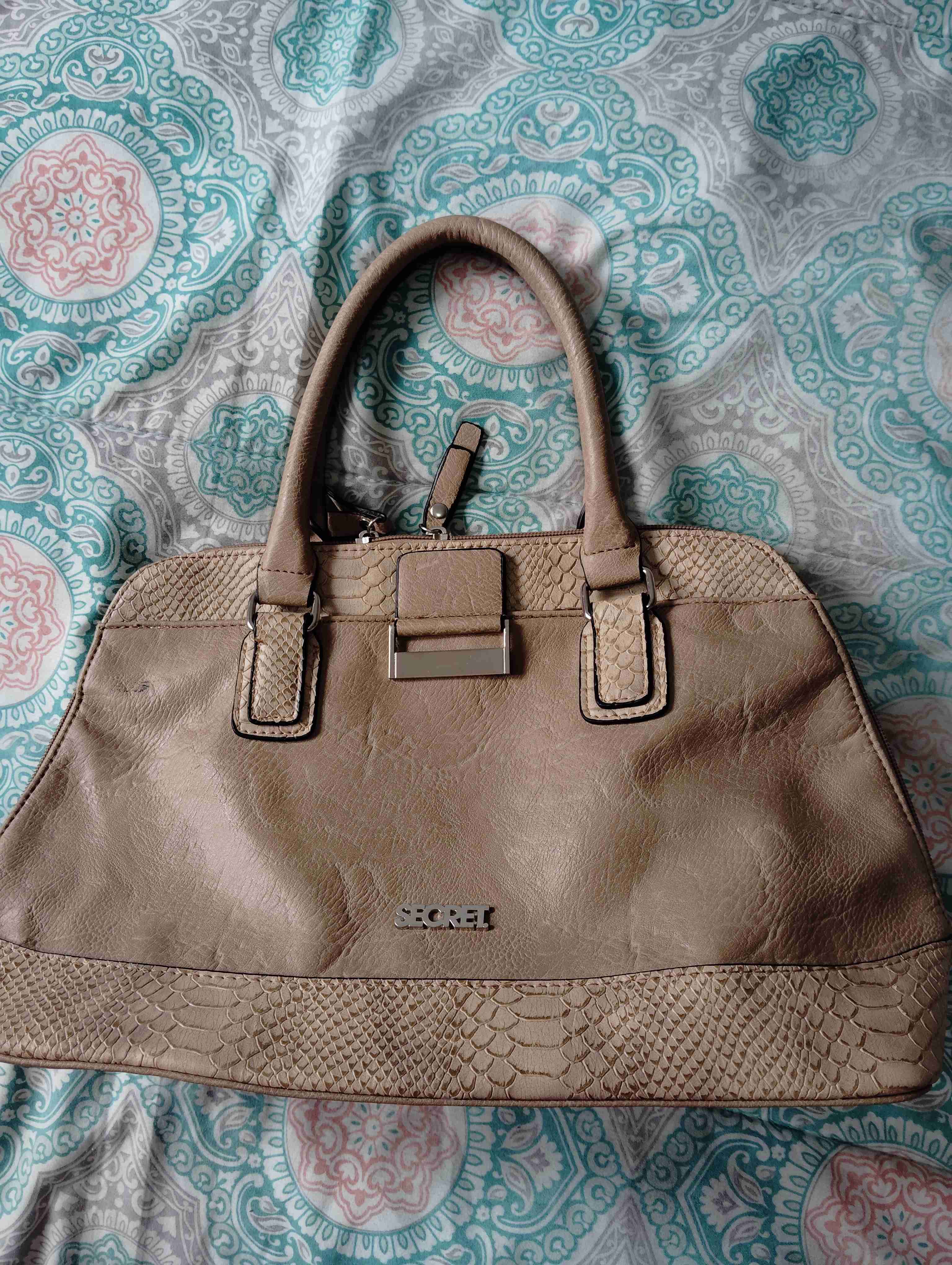 Elegante cartera beige con textura tipo reptil. En buen estado general, ideal para uso diario o salidas formales. Mínimos detalles indicados en las fotos . Una manchita negra y una pequeña raspadura.