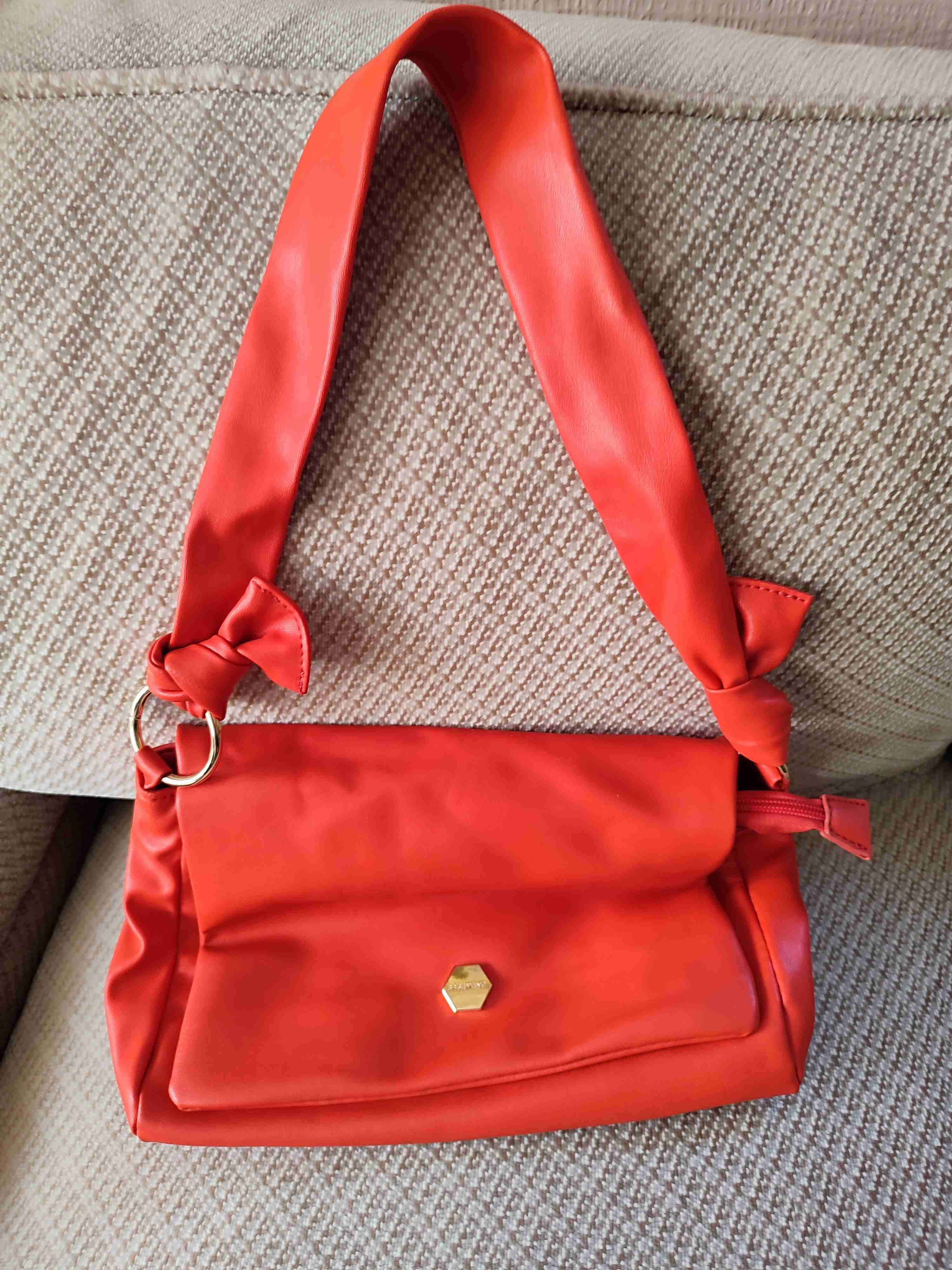 Cartera de color rojo vibrante con asas ajustables. Ideal para salidas casuales o eventos formales. Marca Basement, con dos broches y cierre central. Un bolsillo interior con cierre y dos compartimentos. Casi sin uso, estaba guardada. Solo tiene el detalle de la ultima foto en la parte trasera de la cartera. Medidas: 26 cm ancho, 20 cm alto y 8 cm profundidad. Si quiere más información pregunte por el chat.