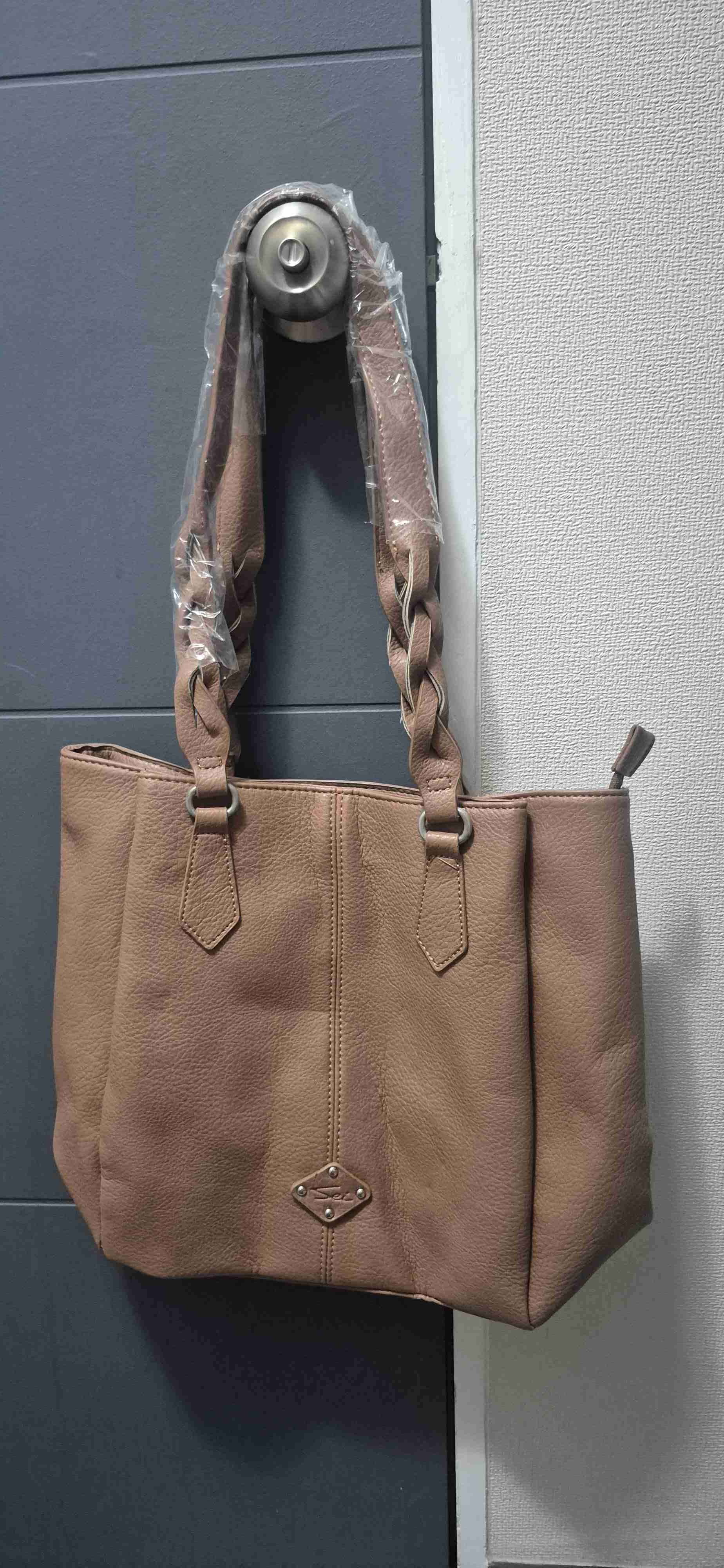 Elegante cartera de cuero marrón. Ideal para uso diario, con diseño trenzado en las asas. Estado nuevo.