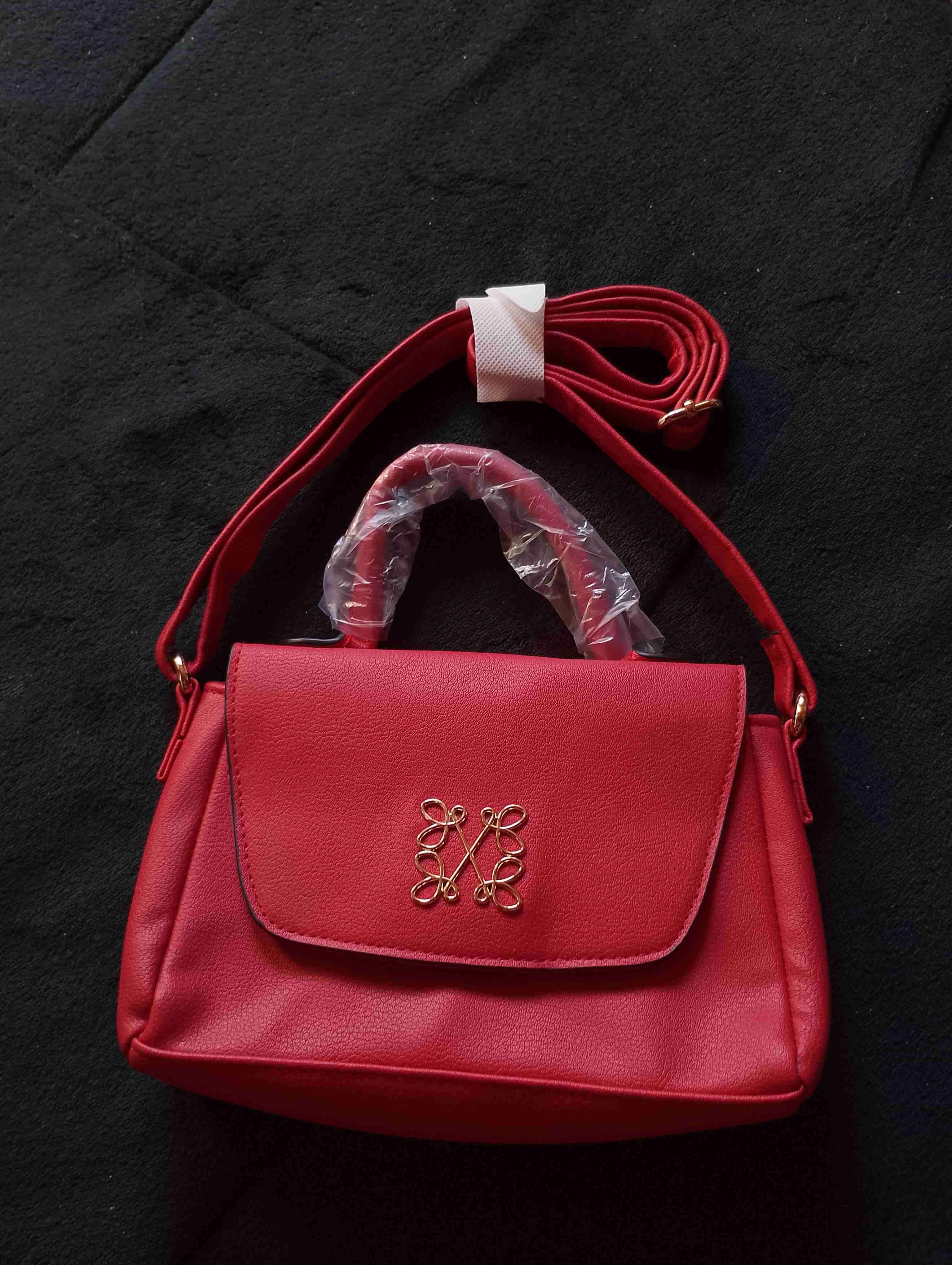 Cartera de color rojo vibrante, ideal para ocasiones formales. En buen estado, con detalles dorados.