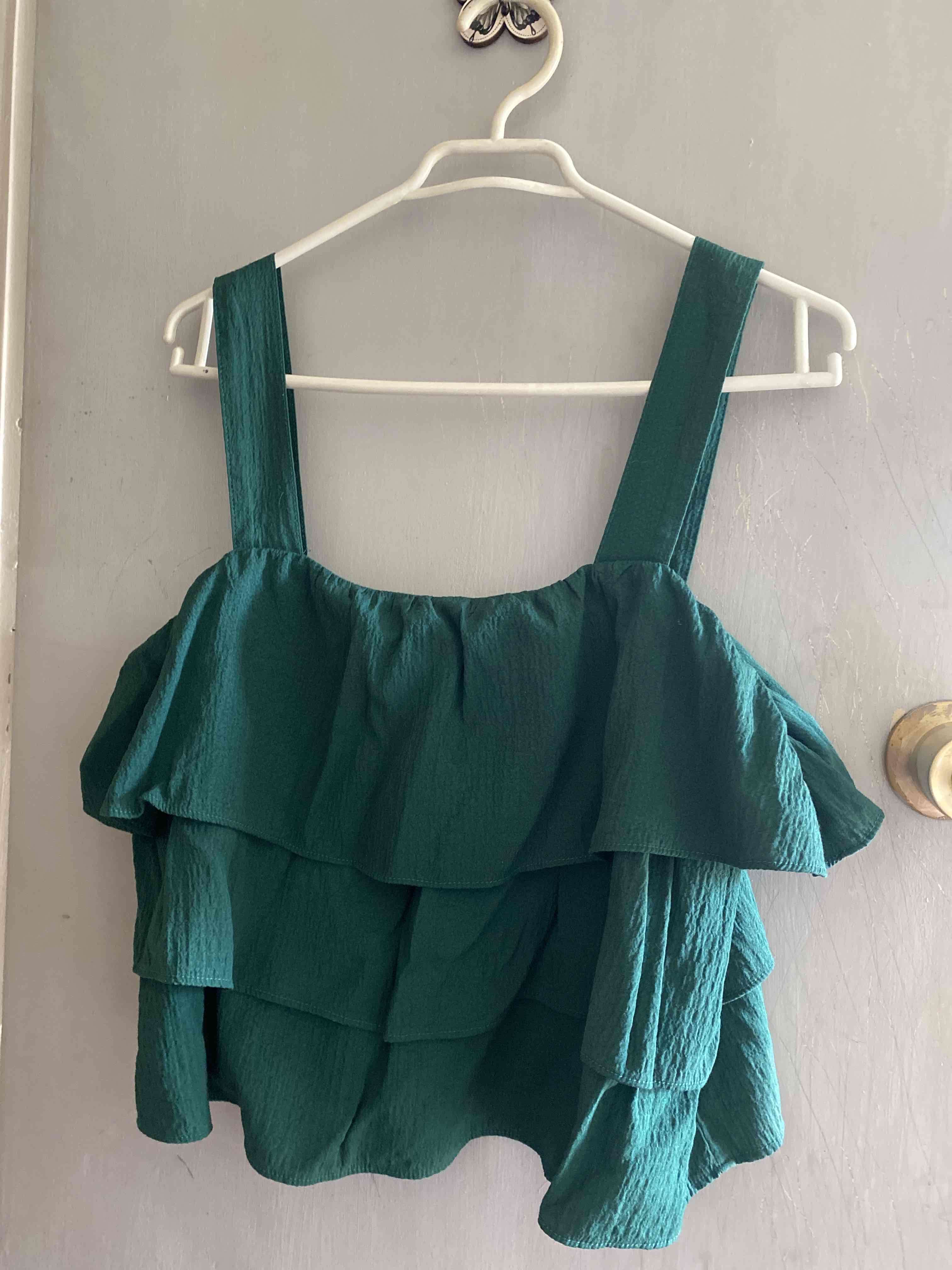 Elegante top verde con volantes en buen estado. Ideal para ocasiones casuales o formales.