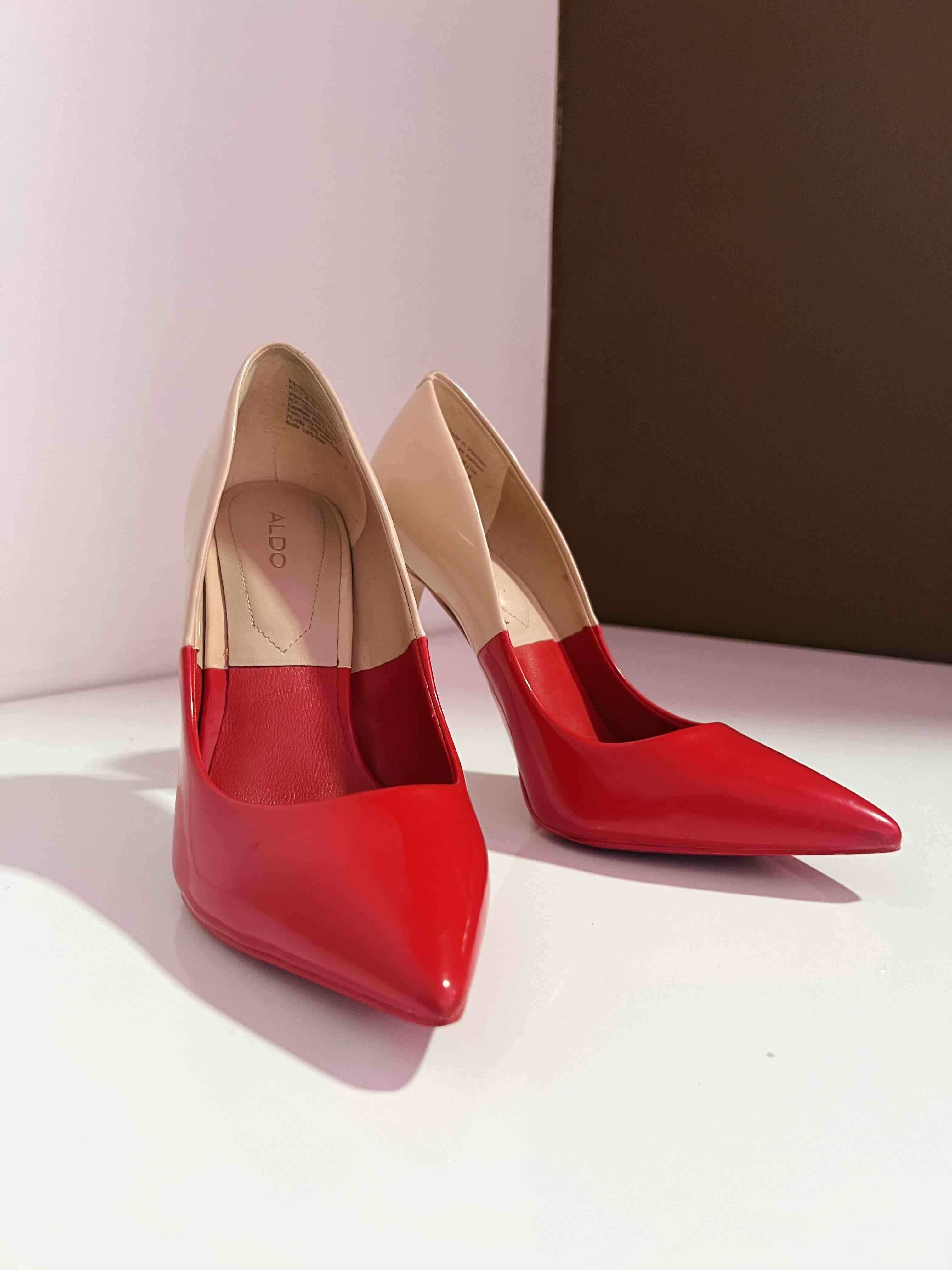 Elegantes zapatos de tacón en dos tonos, perfectos para eventos formales. En buen estado general.