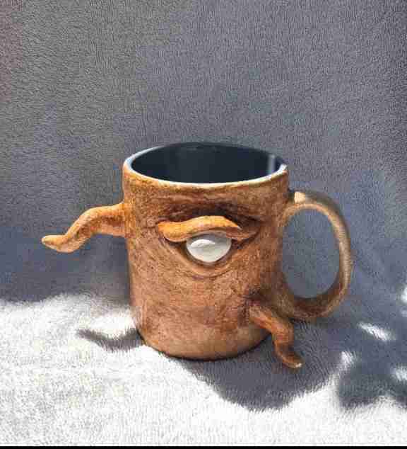 Taza de cerámica con diseño único y artístico. Ideal para coleccionistas o para decorar tu espacio.