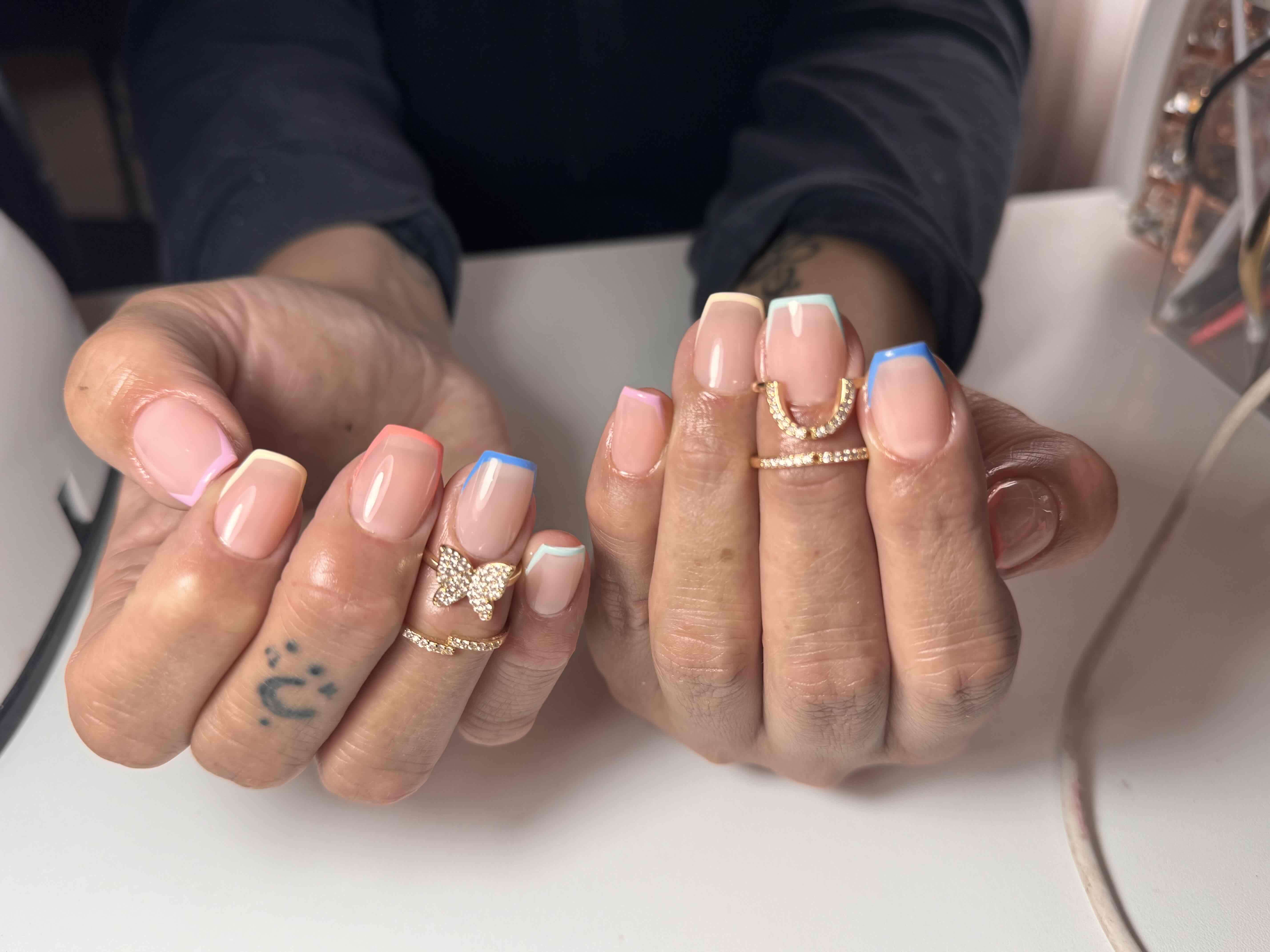 Uñas con diseño francés en colores variados. Perfectas para un look elegante y moderno. Soft gel , diseños Esmaltado permanente Pedicure Y Más en Puchuncaví