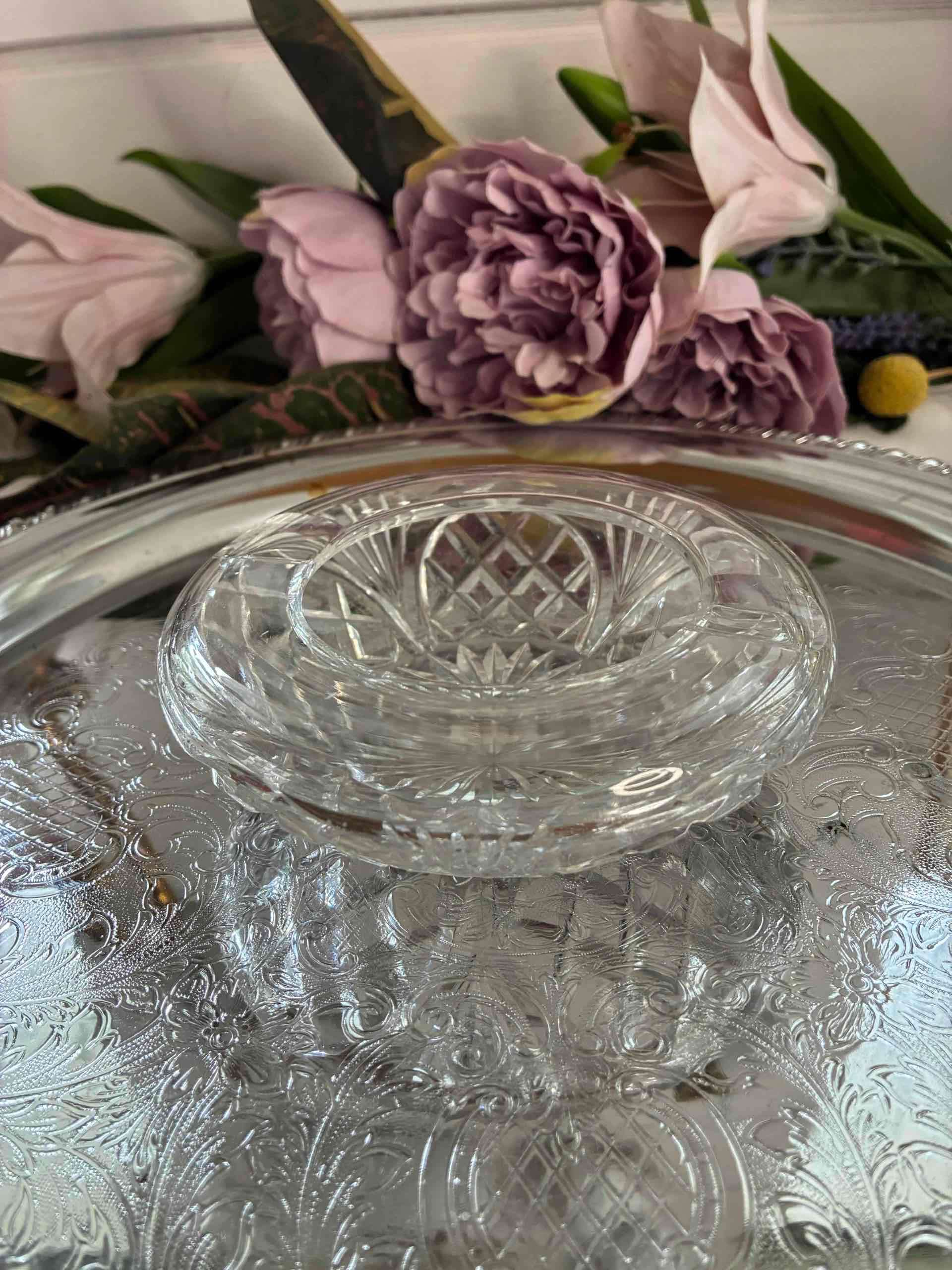 Elegante cenicero de cristal tallado . Perfecto para decoración de interiores.