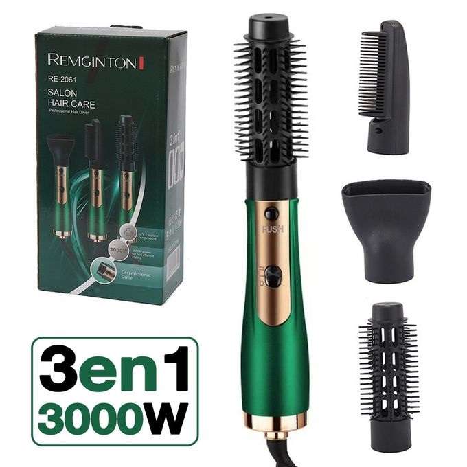 Cepillo secador de cabello 3 en 1 Remington con 3000W de potencia. Ideal para peinar y secar al mismo tiempo. En buen estado, con accesorios incluidos.