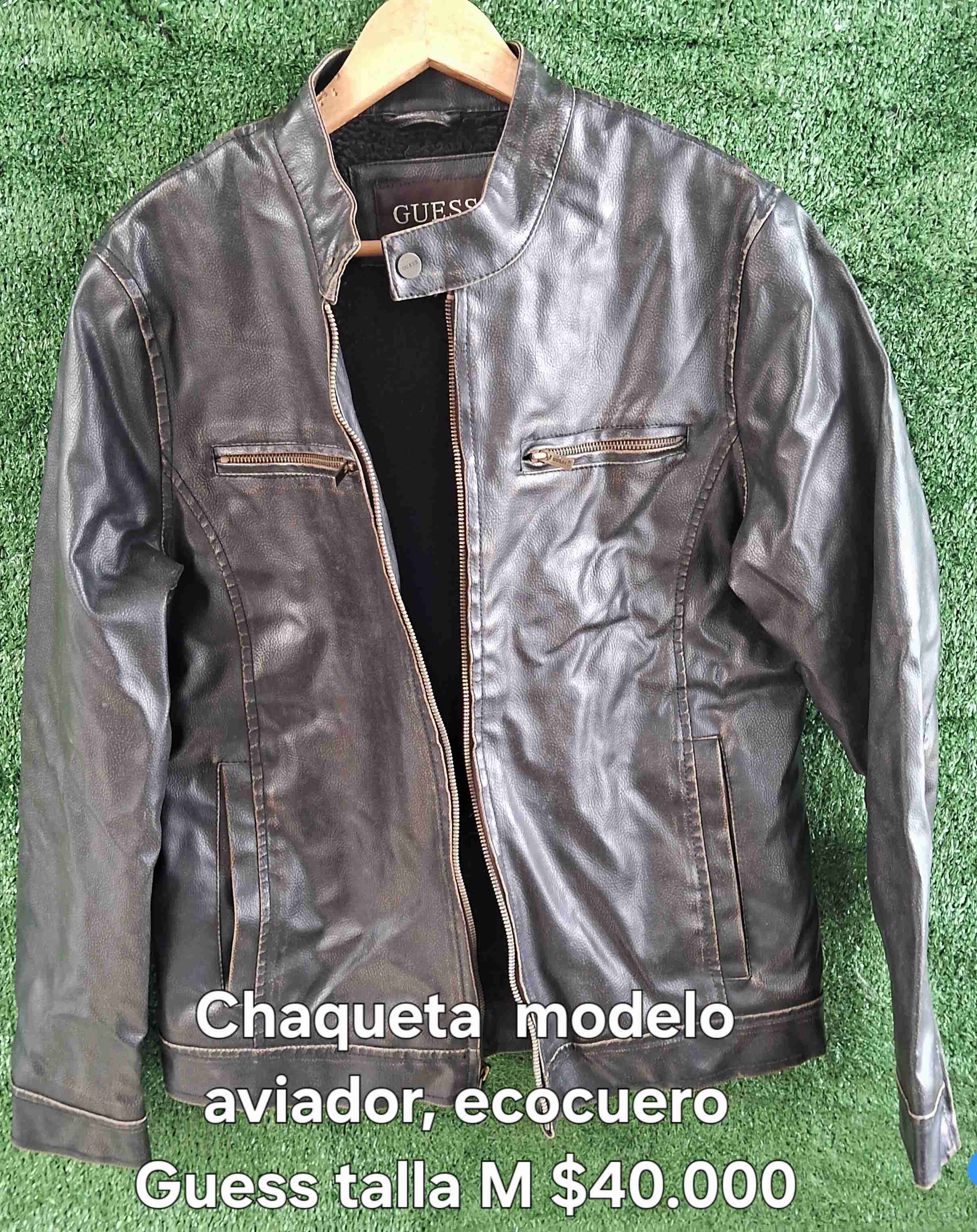Chaqueta estilo aviador de ecocuero en buen estado, ideal para un look casual. Marca Guess, talla M.