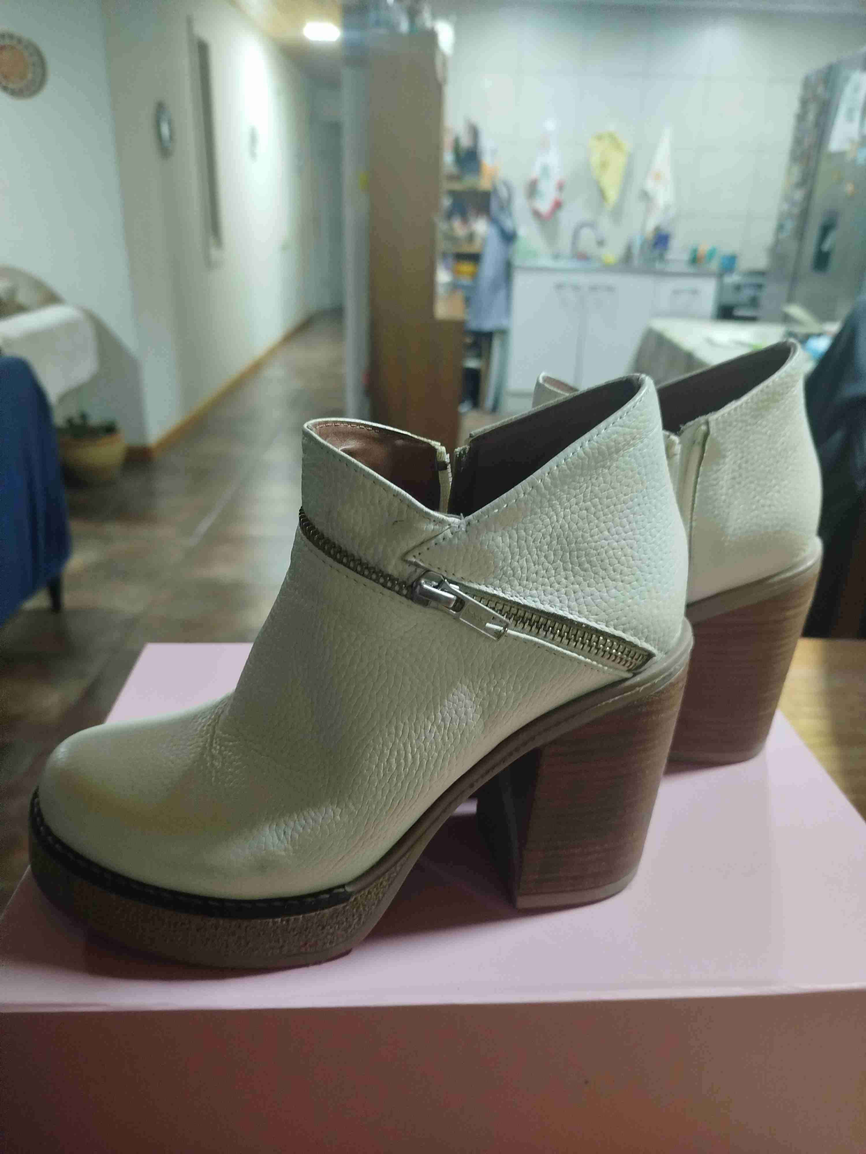 Elegantes botines de cuero beige, perfectos para el otoño. Cierre lateral y tacón cómodo para el uso diario.Cuero, goma.En perfecto estado De La Tienda de Buenos Aires.