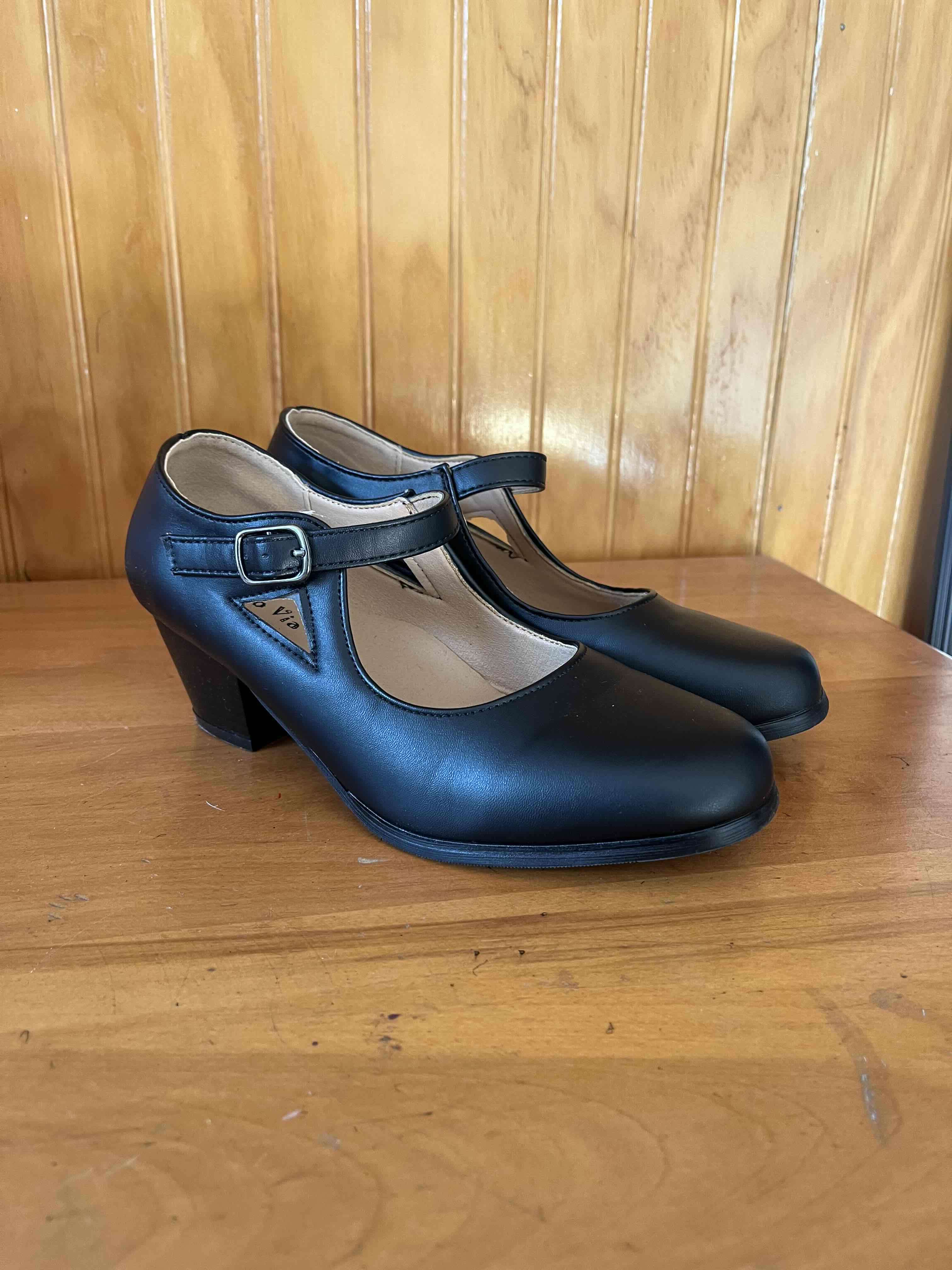 Zapatos de tacón negro con correa