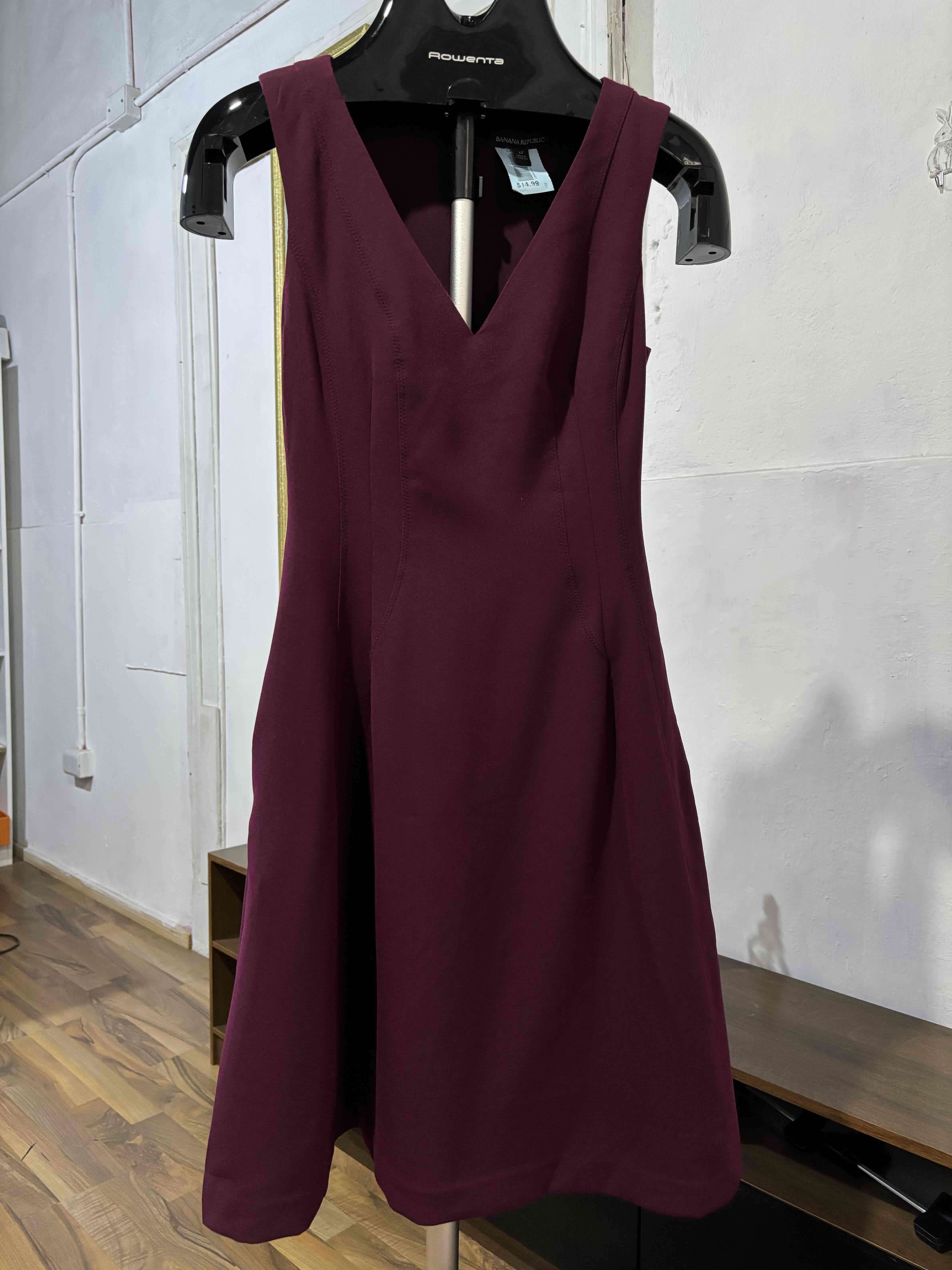 Elegante vestido burdeos sin mangas ideal para eventos formales. En buen estado y con un diseño moderno.