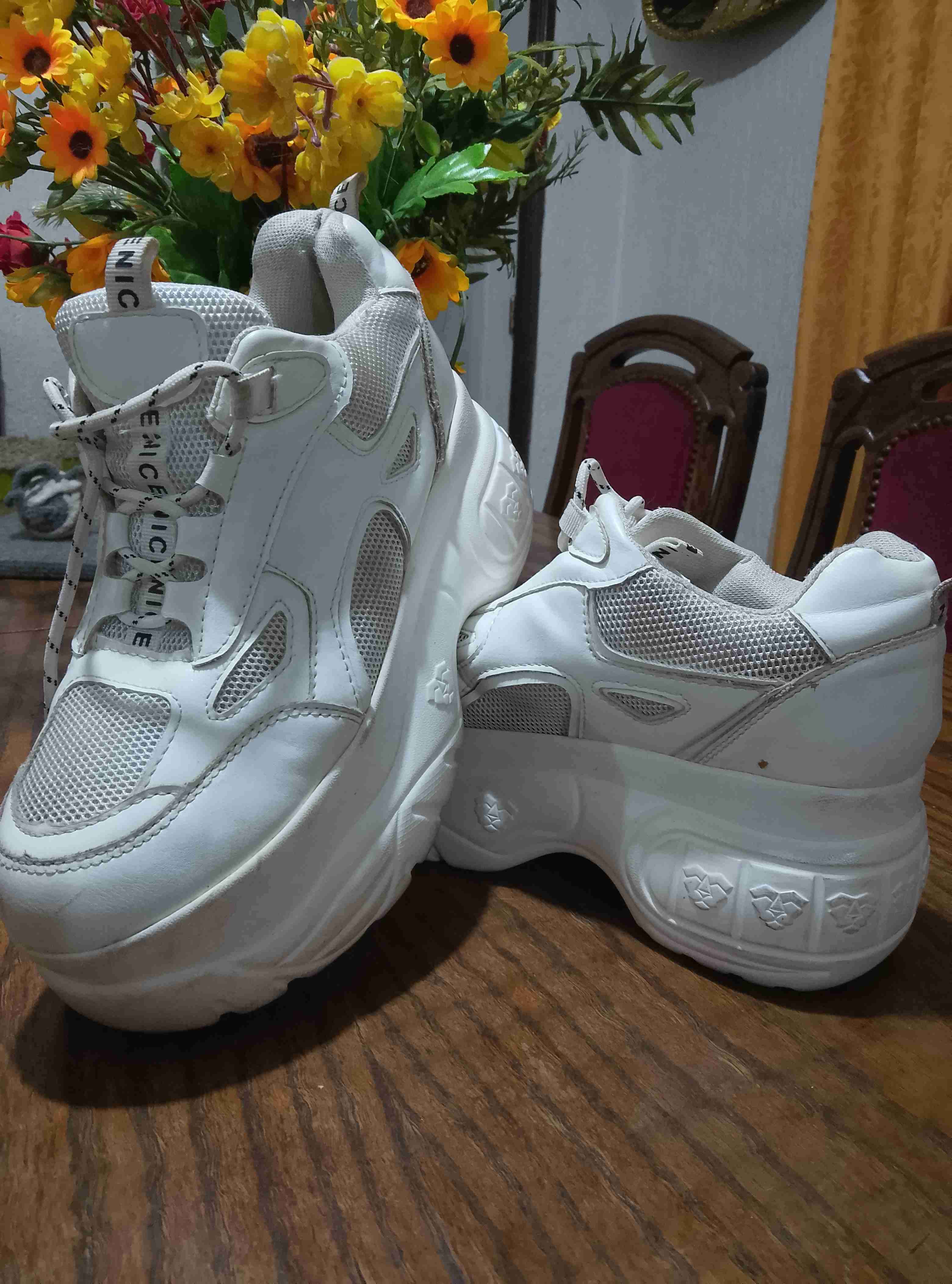 Zapatillas blancas de plataforma, estilo moderno y casual. Buen estado, perfectas para uso diario.