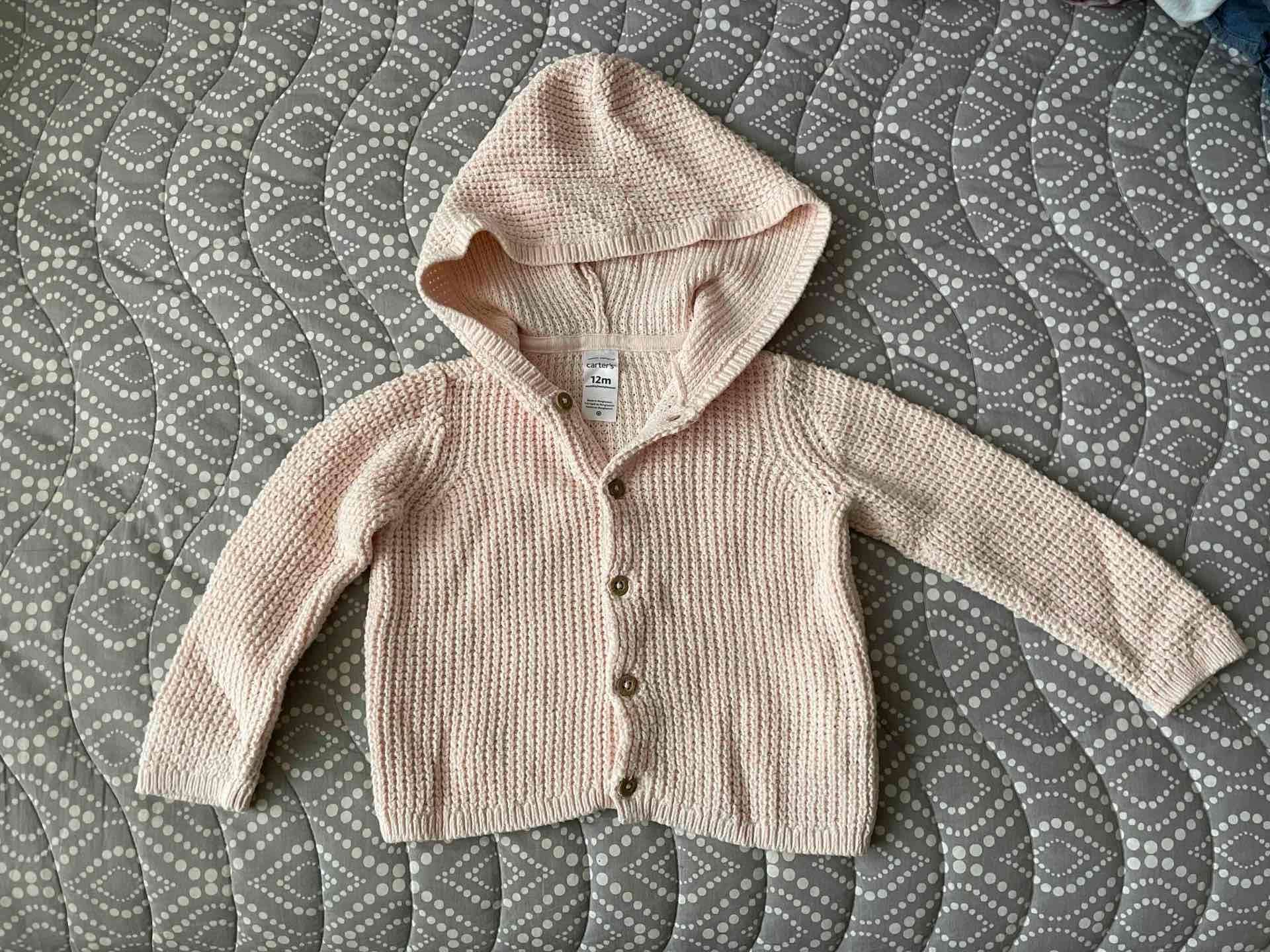 Chaqueta de bebé rosa pálido con capucha. En buen estado.