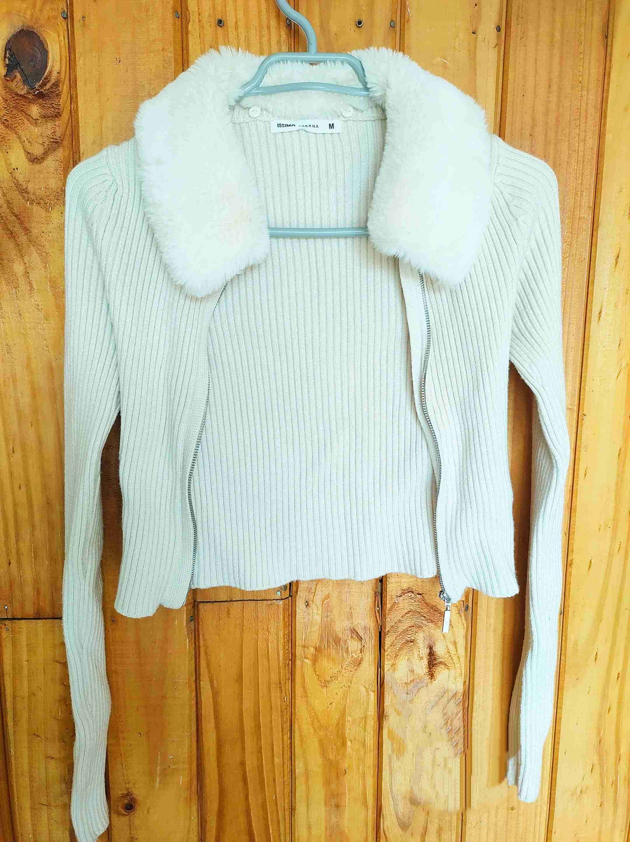 Chaleco de punto beige con cuello de lana sintética muy suave. Ideal para el otoño