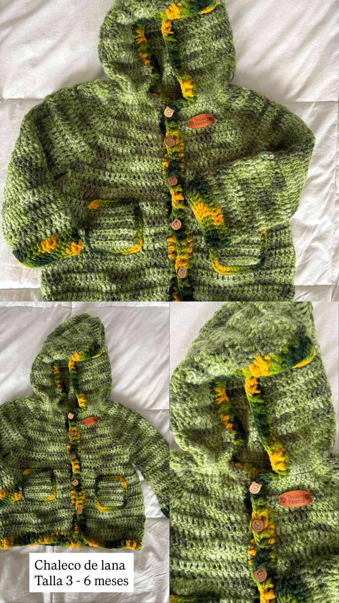 Chaleco de lana tejido a mano, ideal para bebé de 3 a 6 meses. Perfecto para mantener abrigado en invierno. Un solo uso.