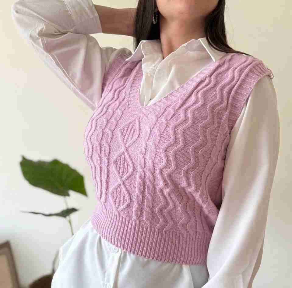 Elegante chaleco sin mangas lila con diseño tejido, perfecto para un look casual. Ideal para primavera y otoño. Nuevo, talla estandar abarca hasta la xl