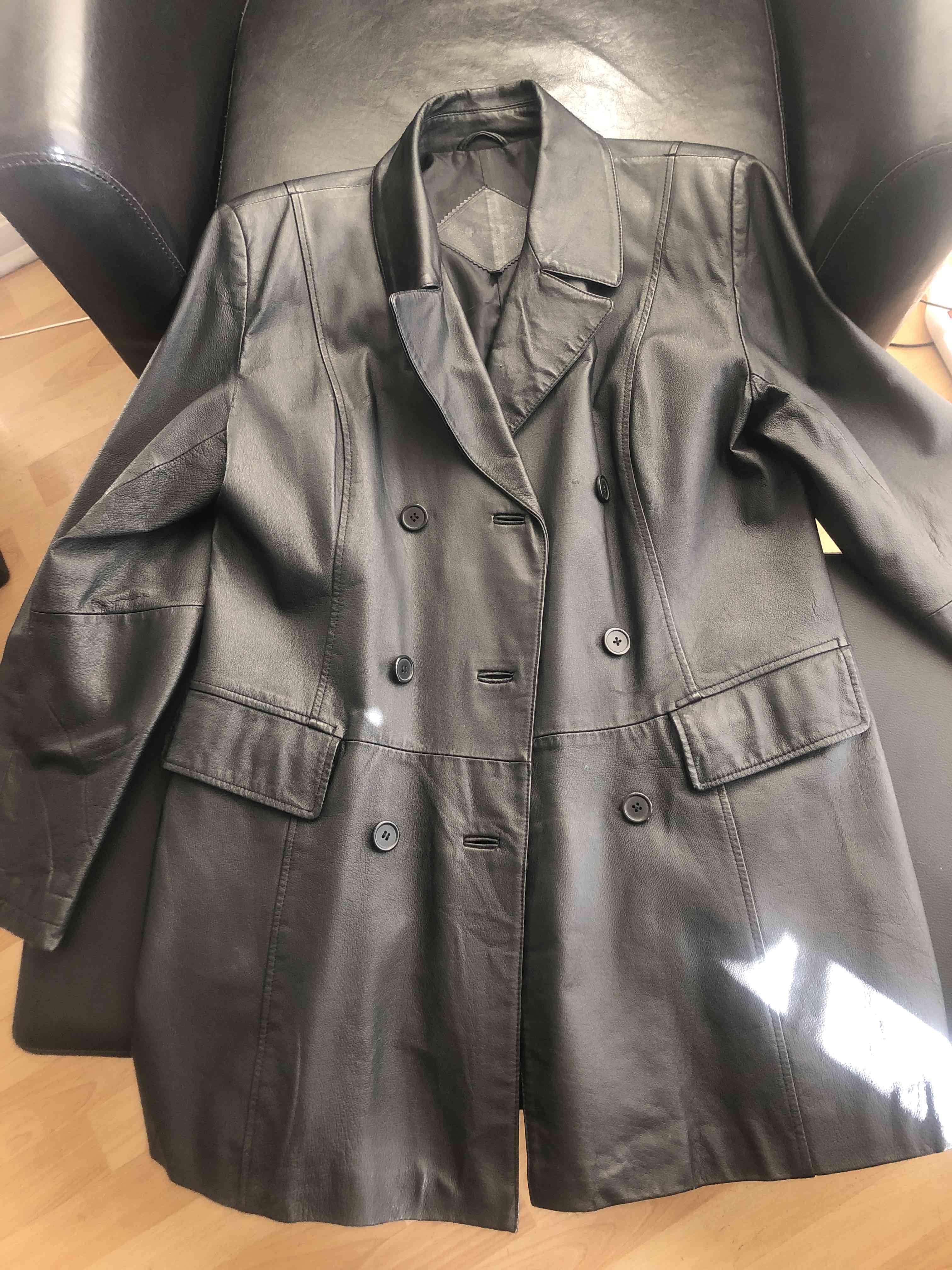 Elegante chaqueta de cuero negro, perfecto para el invierno. Abotonadura hacia izquierda (mujer), talla L (grande). En perfecto estado, prácticamente nuevo.