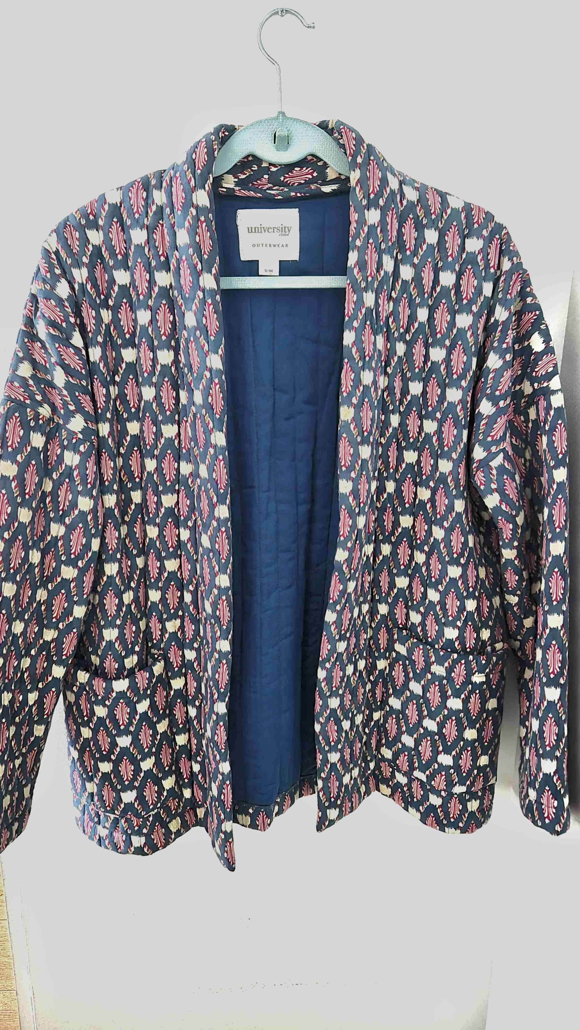 Chaqueta liviana con patrón colorido ideal para entretiempo. Buen estado