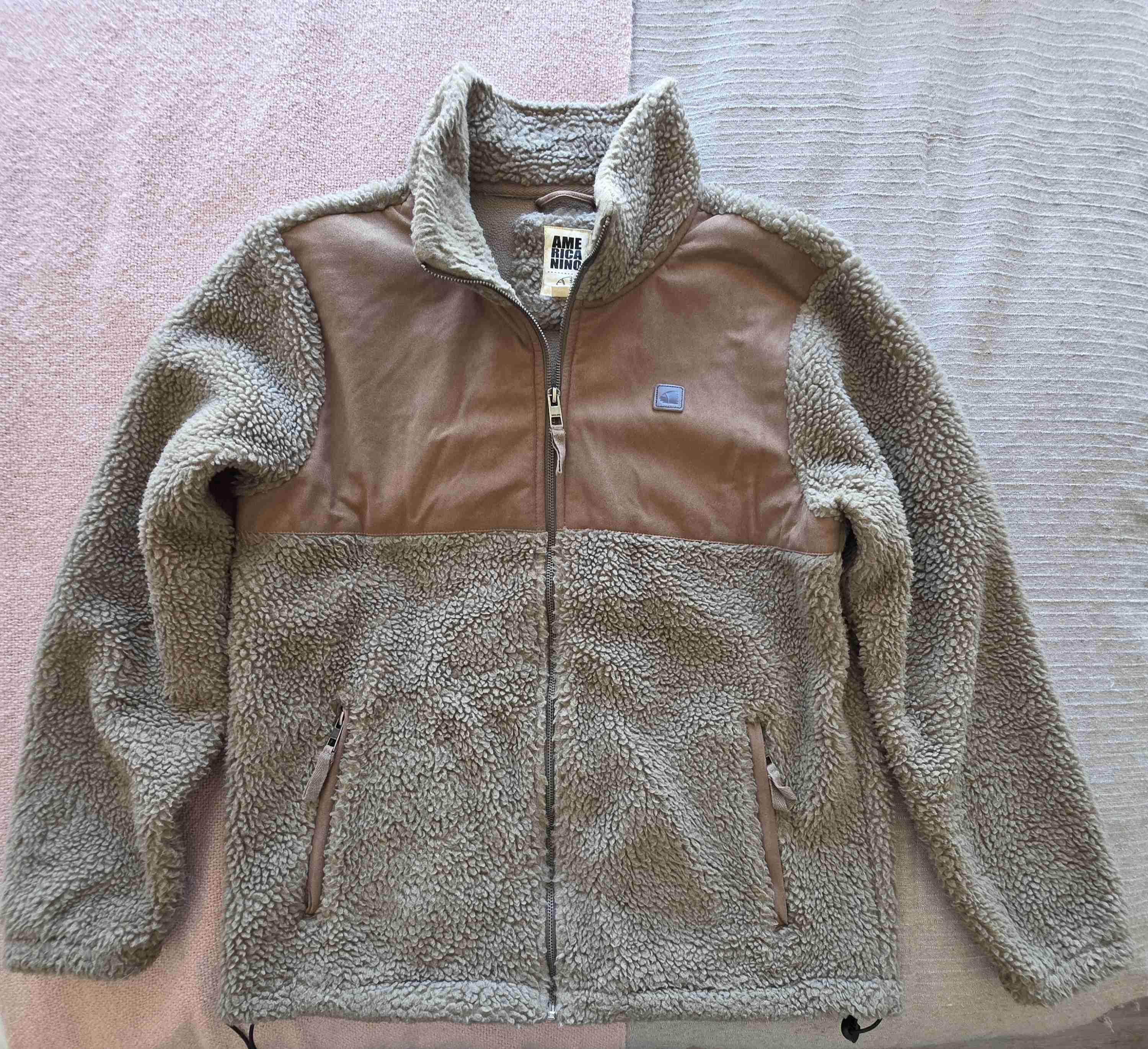 Chaqueta color beige con detalles marrones. Ideal para el invierno, en buen estado.