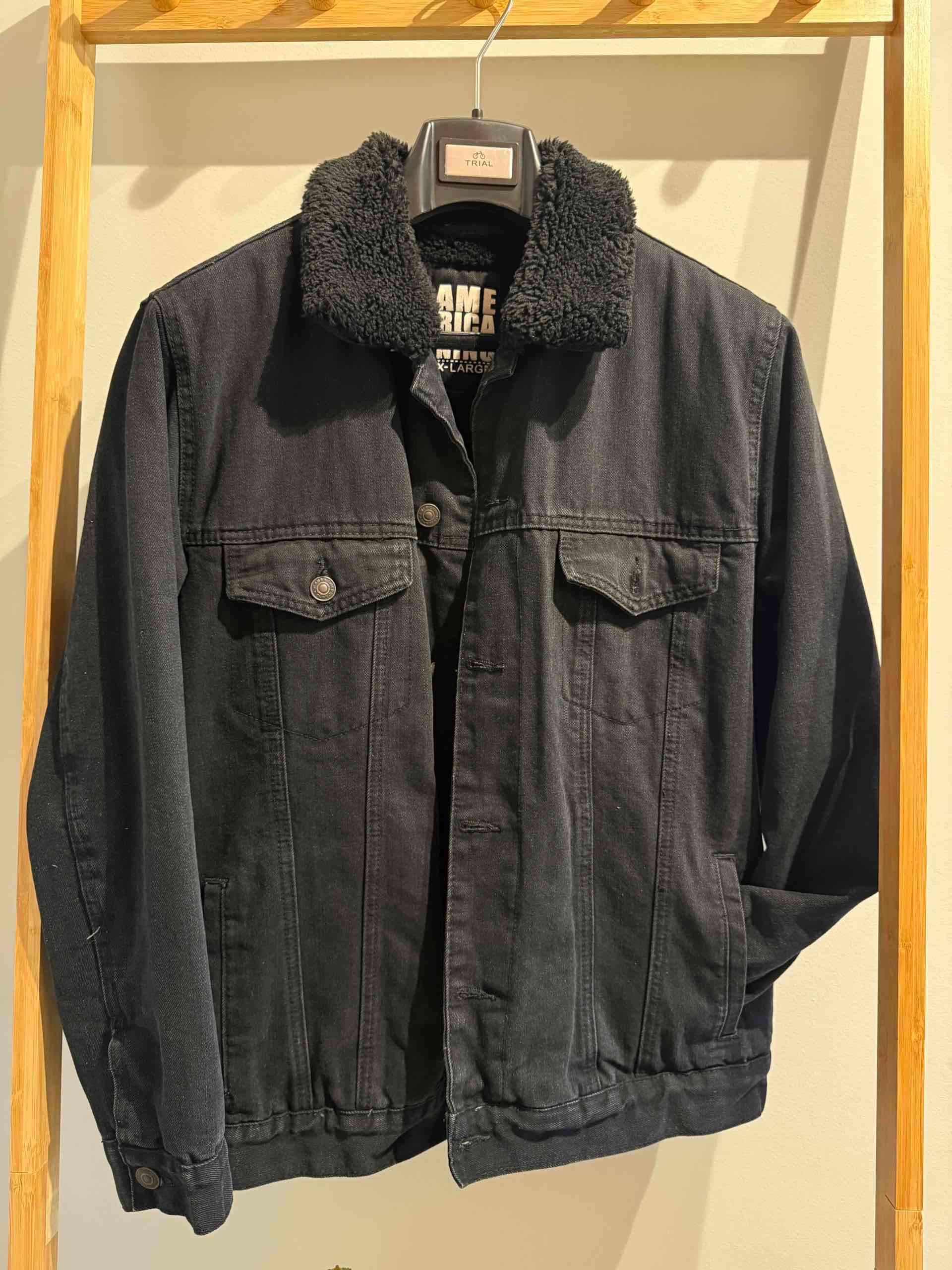 Chaqueta casual negra tipo denim (mezclilla) interior de corderito, ideal para el invierno. En buen estado.