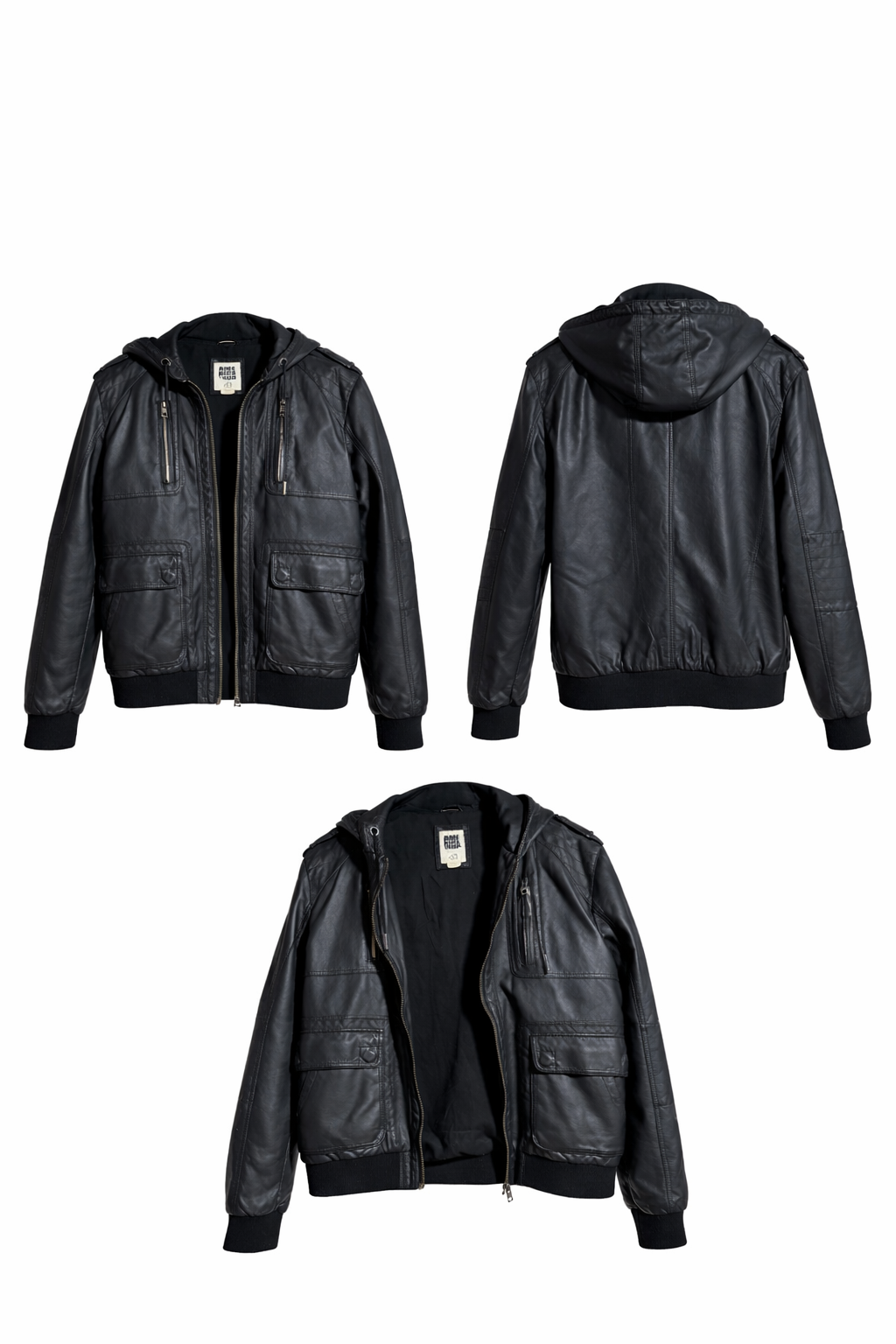 Chaqueta de cuero sintético negra con capucha. Ideal para el invierno, en buen estado general. Talla S. Referencia: Hombros 44,5 - 45 cm Pecho 94 - 98.5 cm Cadera: 96 - 100.5 cm