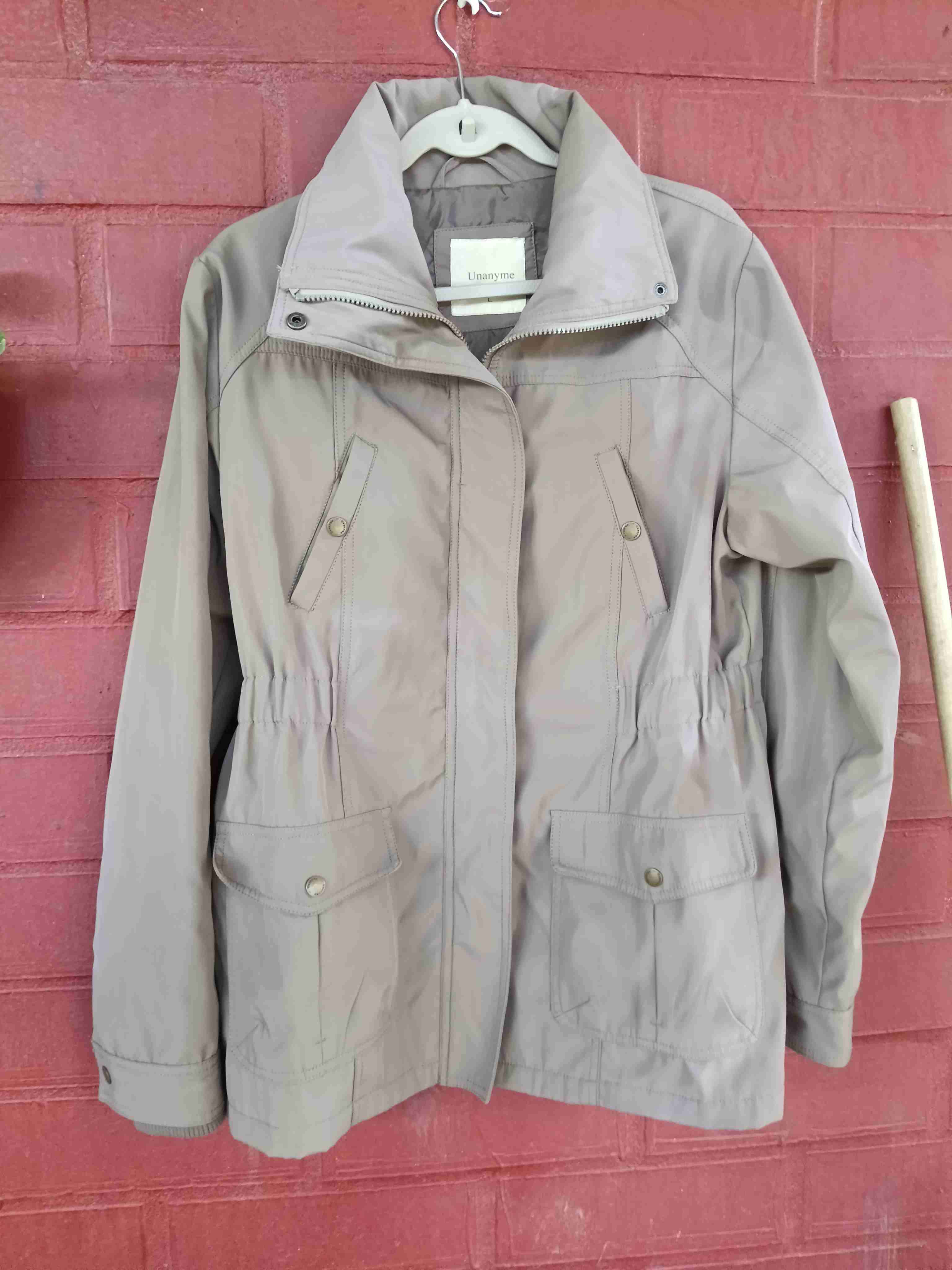 Chaqueta beige estilo casual, ideal para días frescos. Buen estado con bolsillos amplios.