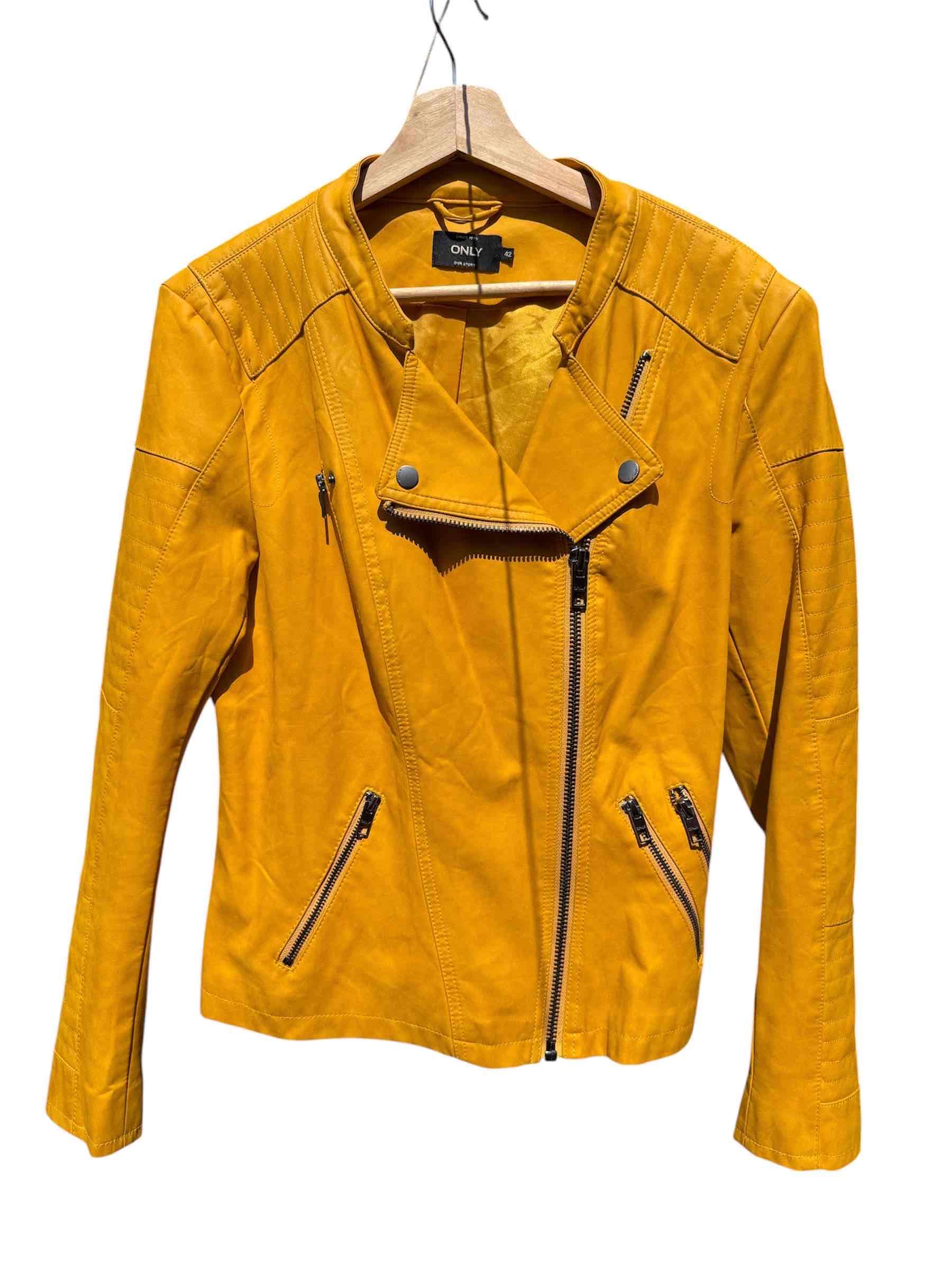 Chaqueta estilo biker Only de color amarillo vibrante, ideal para un look moderno. En excelente estado, perfecta para la temporada.