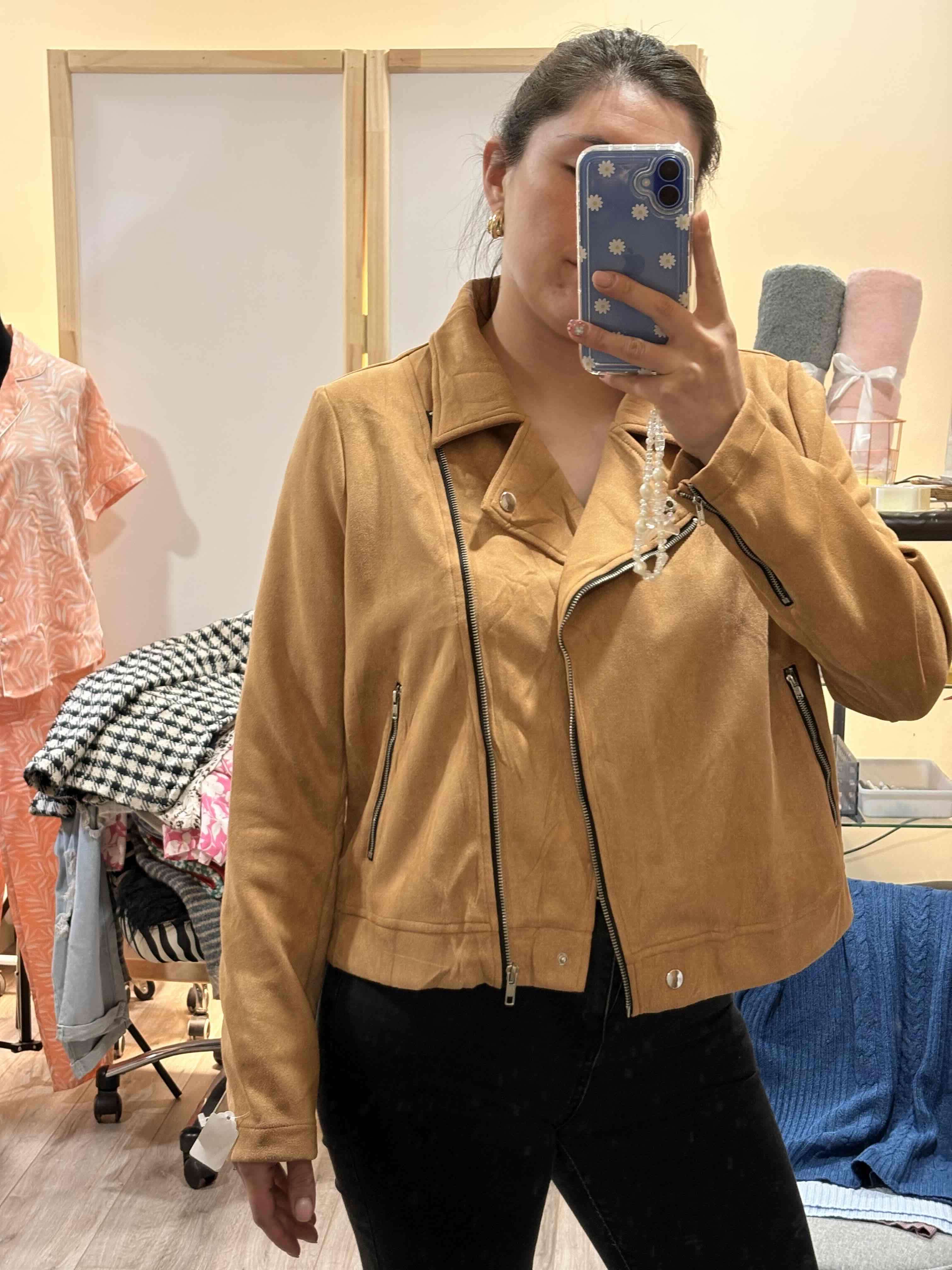 Chaqueta color camel estilo casual. Perfecta para looks de otoño. Está en buen estado, con cierre frontal y bolsillos. Para L Y XL queda bien