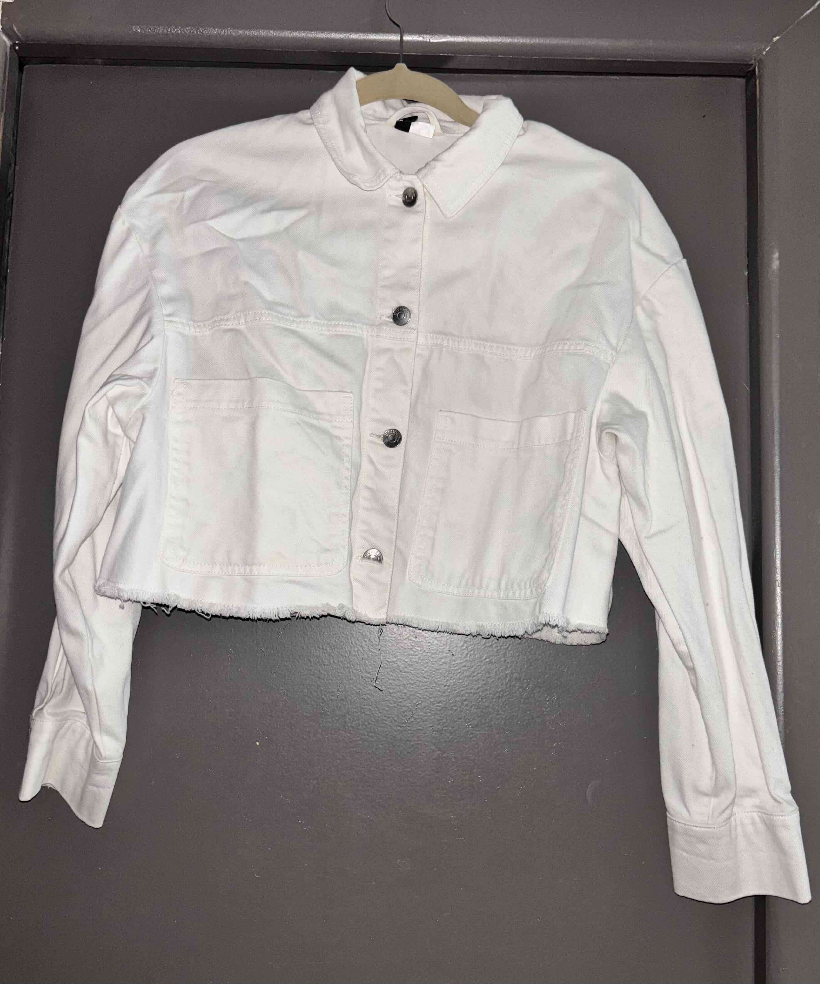 Chaqueta corta blanca estilo casual. Ideal para combinar en el día a día. En buen estado, con leves signos de uso.