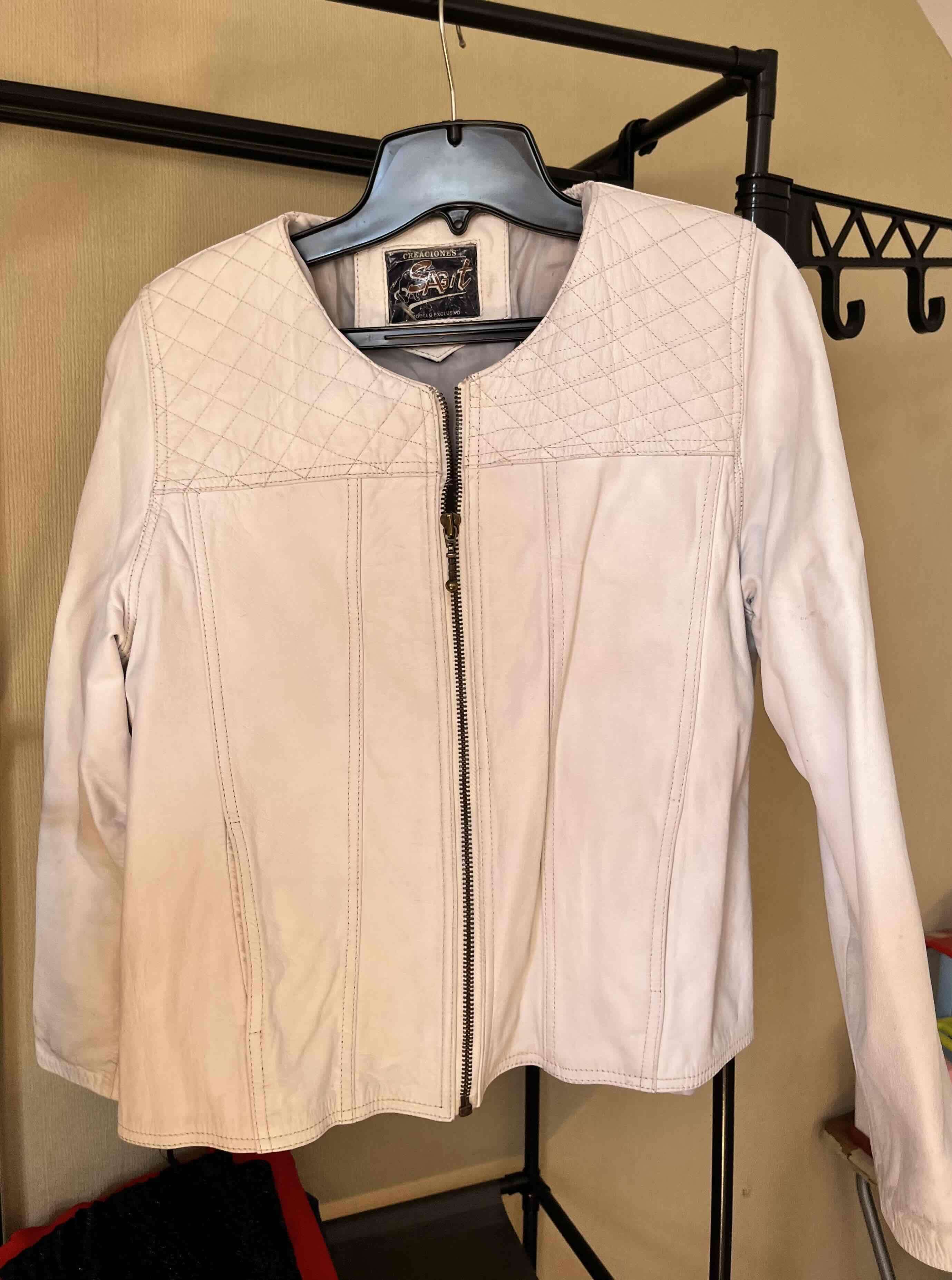 Chaqueta de cuero blanca de mujer con cierre