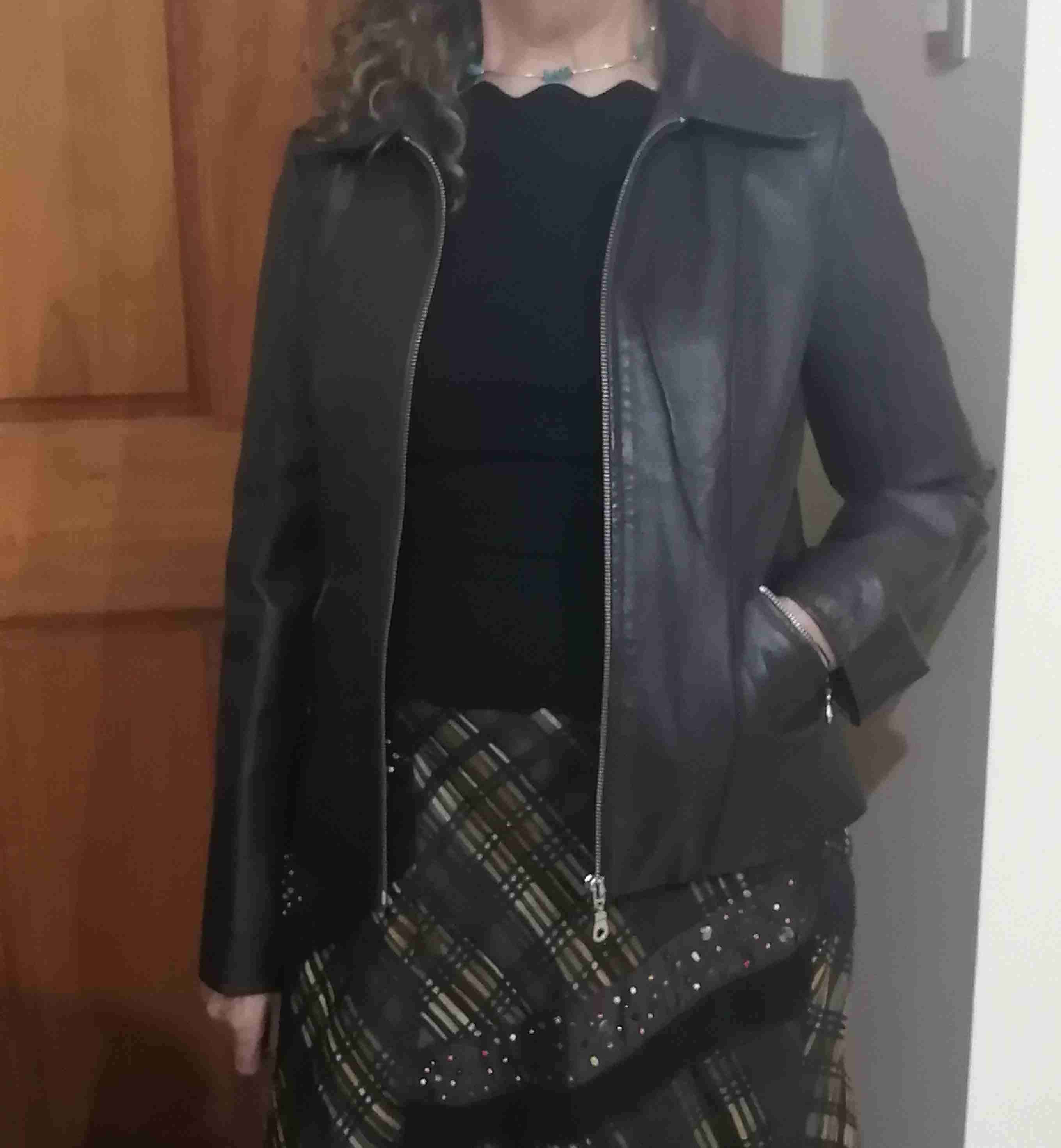 Elegante chaqueta de cuero color café moro, ideal para el clima fresco. En excelente estado, como nueva, sin ningún detalle.