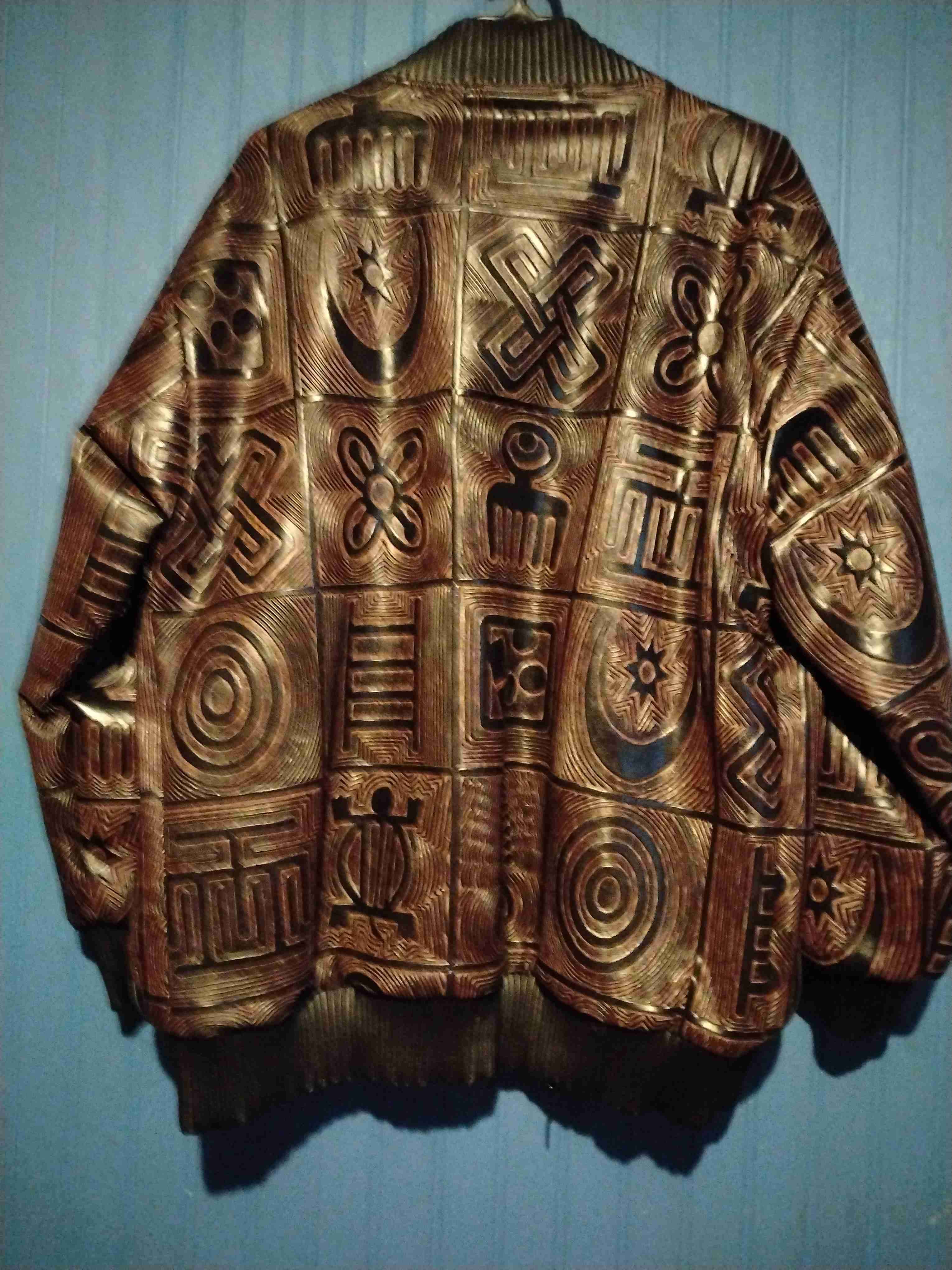 Chaqueta de cuero vegano con diseño estampado único. Nueva , ideal para otoño o invierno.salio 120000 mil la dejo en 45000 conversable