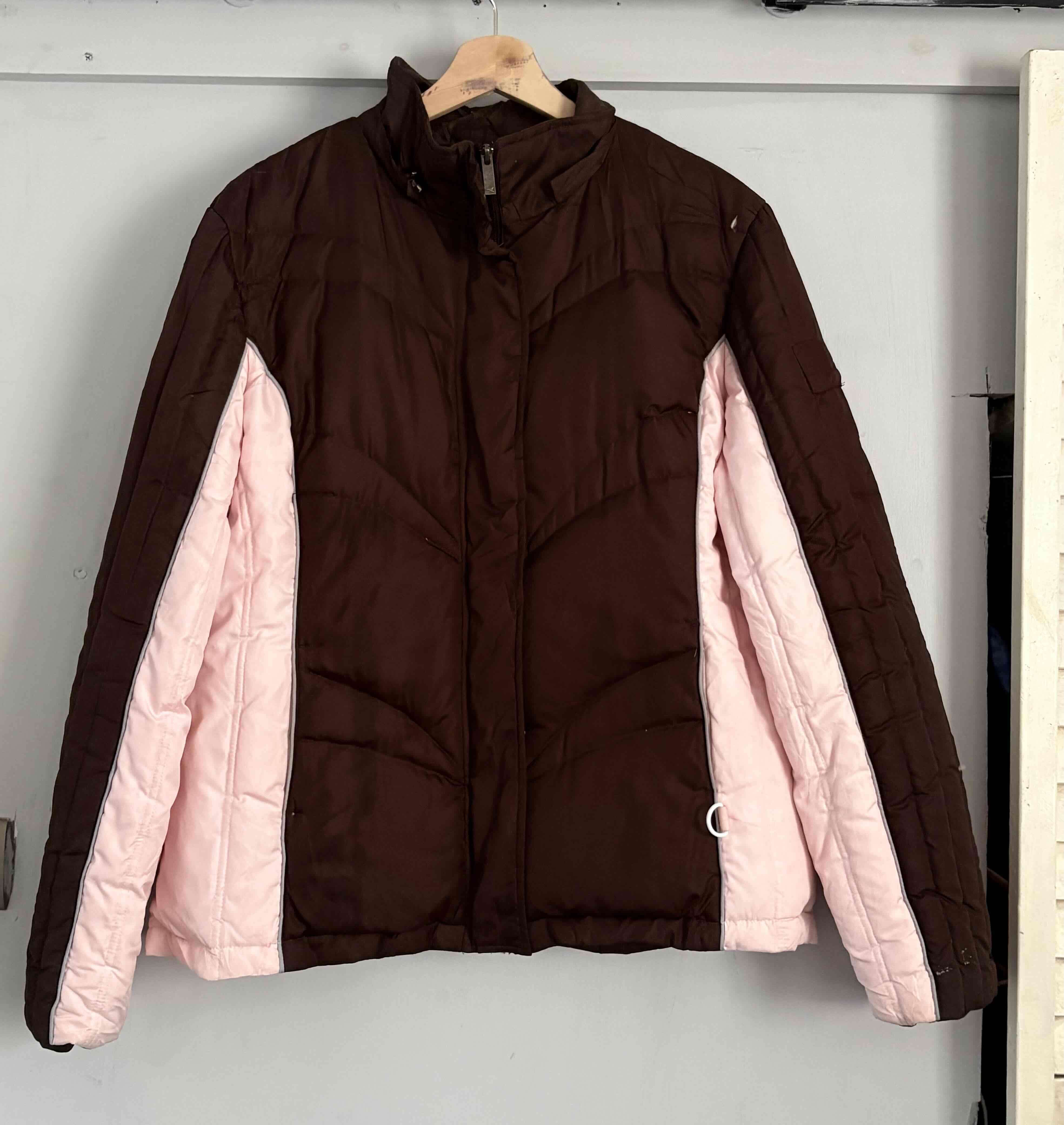 Chaqueta gruesa ideal para el invierno, en colores café y rosa. Bien cuidada, perfecto para días fríos. Tallas M /L