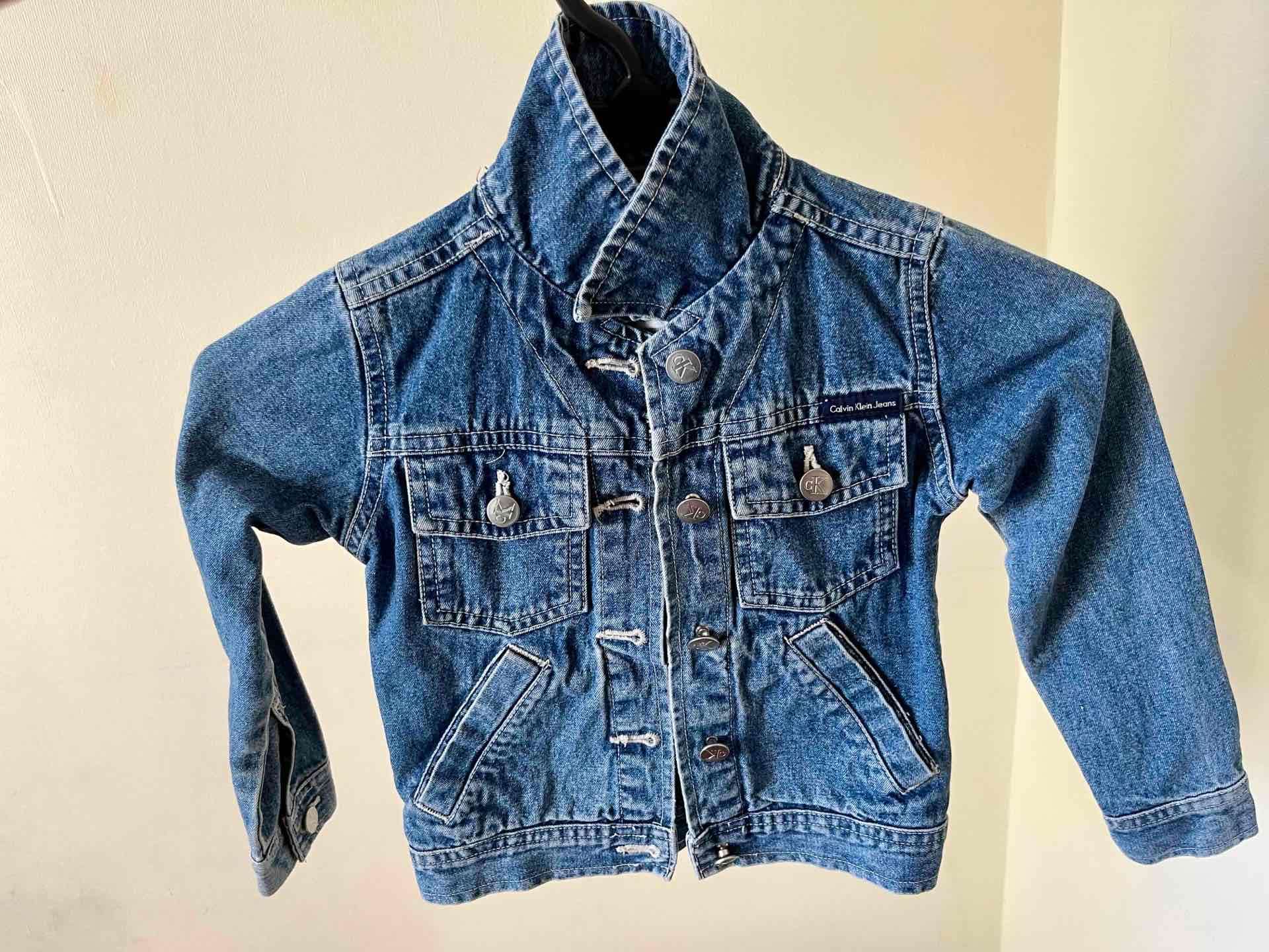 Chaqueta de mezclilla Calvin Klein Original para niño (talla 1-2 años), en buen estado, cero detalles. Ideal para usar en media estación.