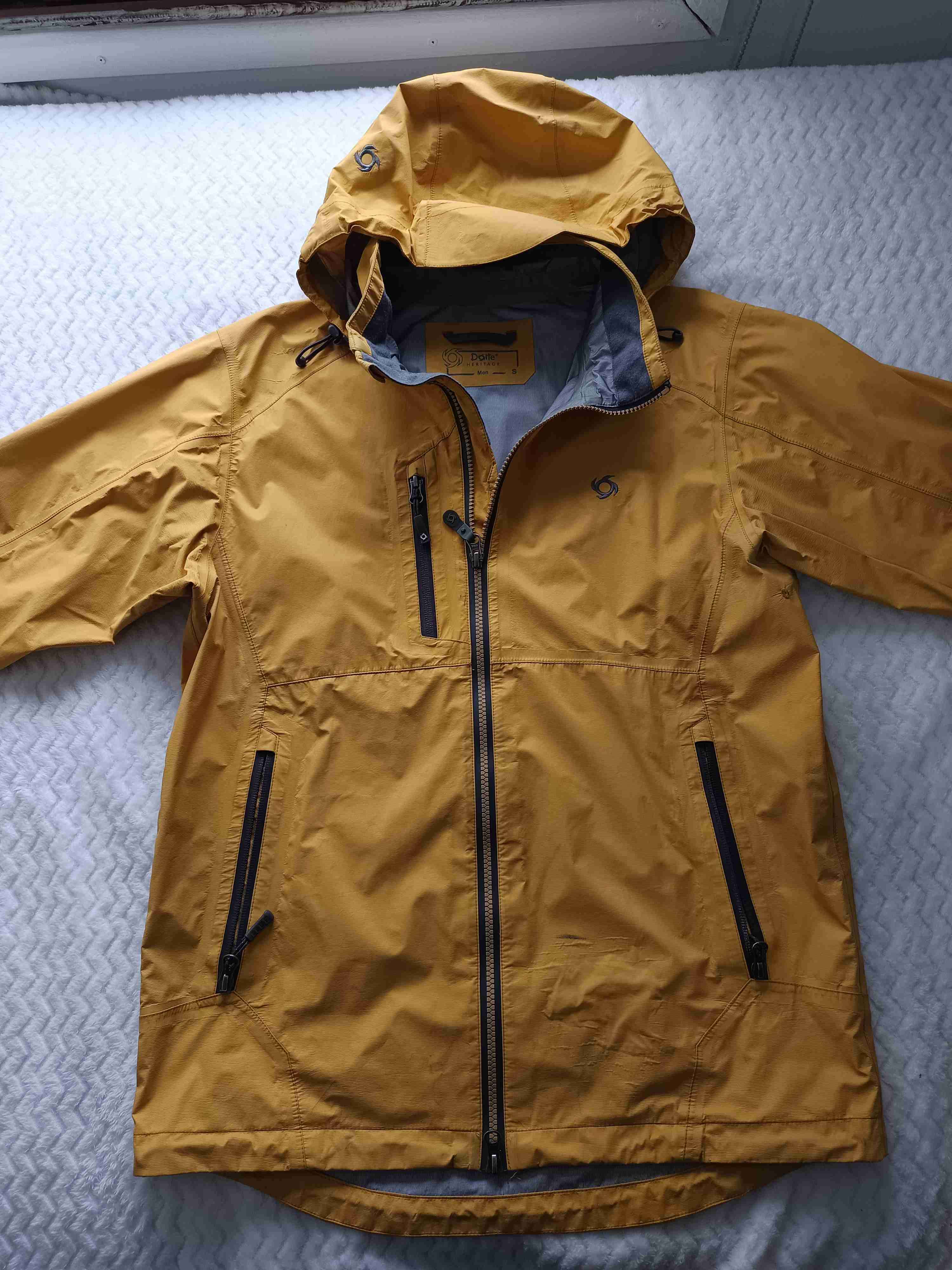 Chaqueta resistente al agua, ideal para actividades al aire libre. Color amarillo vibrante, en buen estado general. Perfecta para otoño e invierno.Muy leves detalles por poco uso.