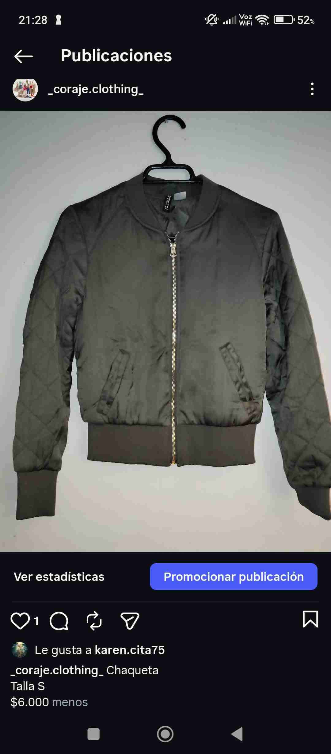 Chaqueta bomber verde, ideal para días frescos. Buen estado