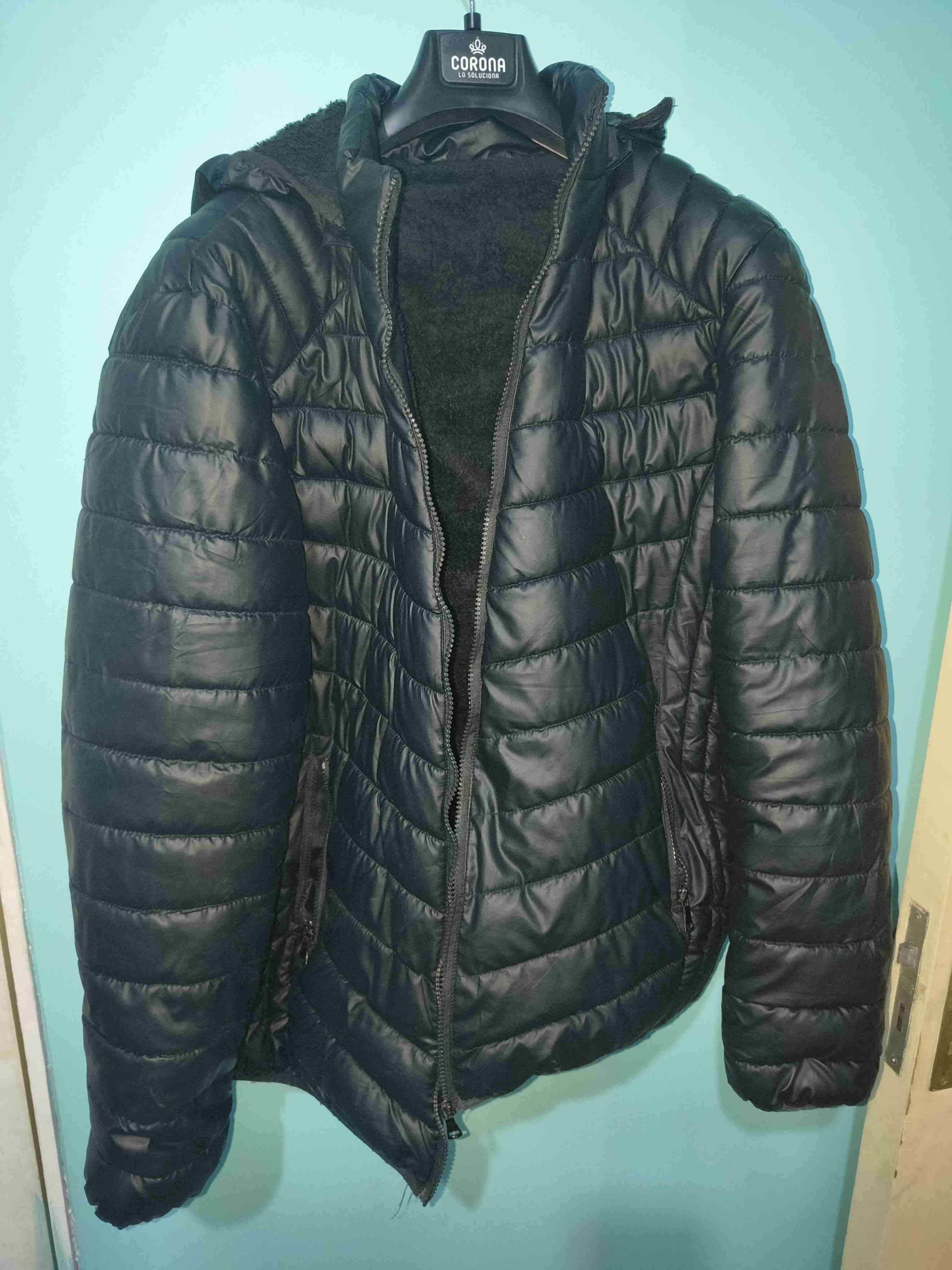 Chaqueta negra impermeable y acolchada por dentro, ideal para el frío. Buen estado general, levemente usada.