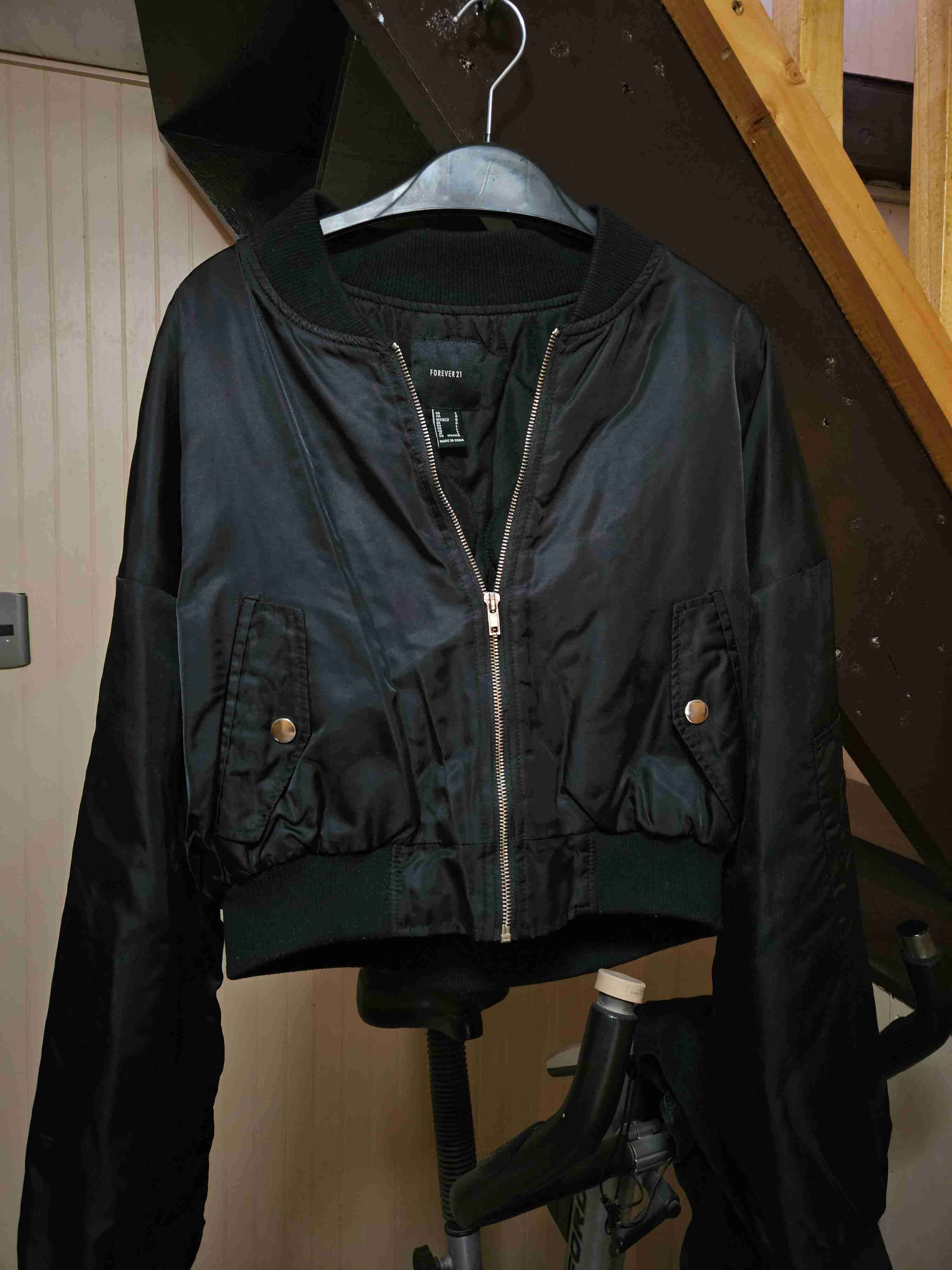 Chaqueta bomber negra en buen estado, ideal para el otoño. Estilo casual y moderno.