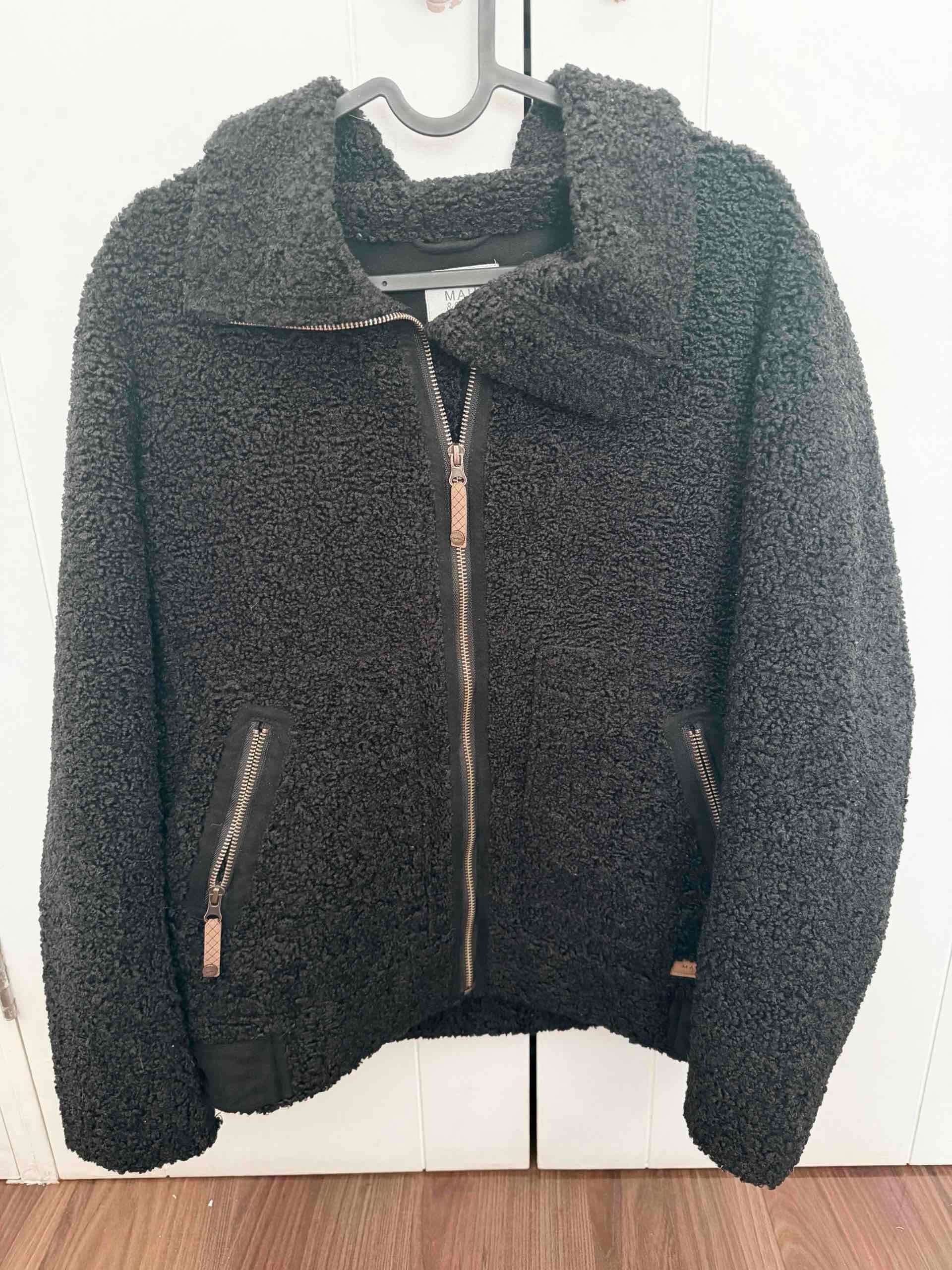 Cálida chaqueta negra perfecta para el invierno. En muy buen estado, con cierre frontal.