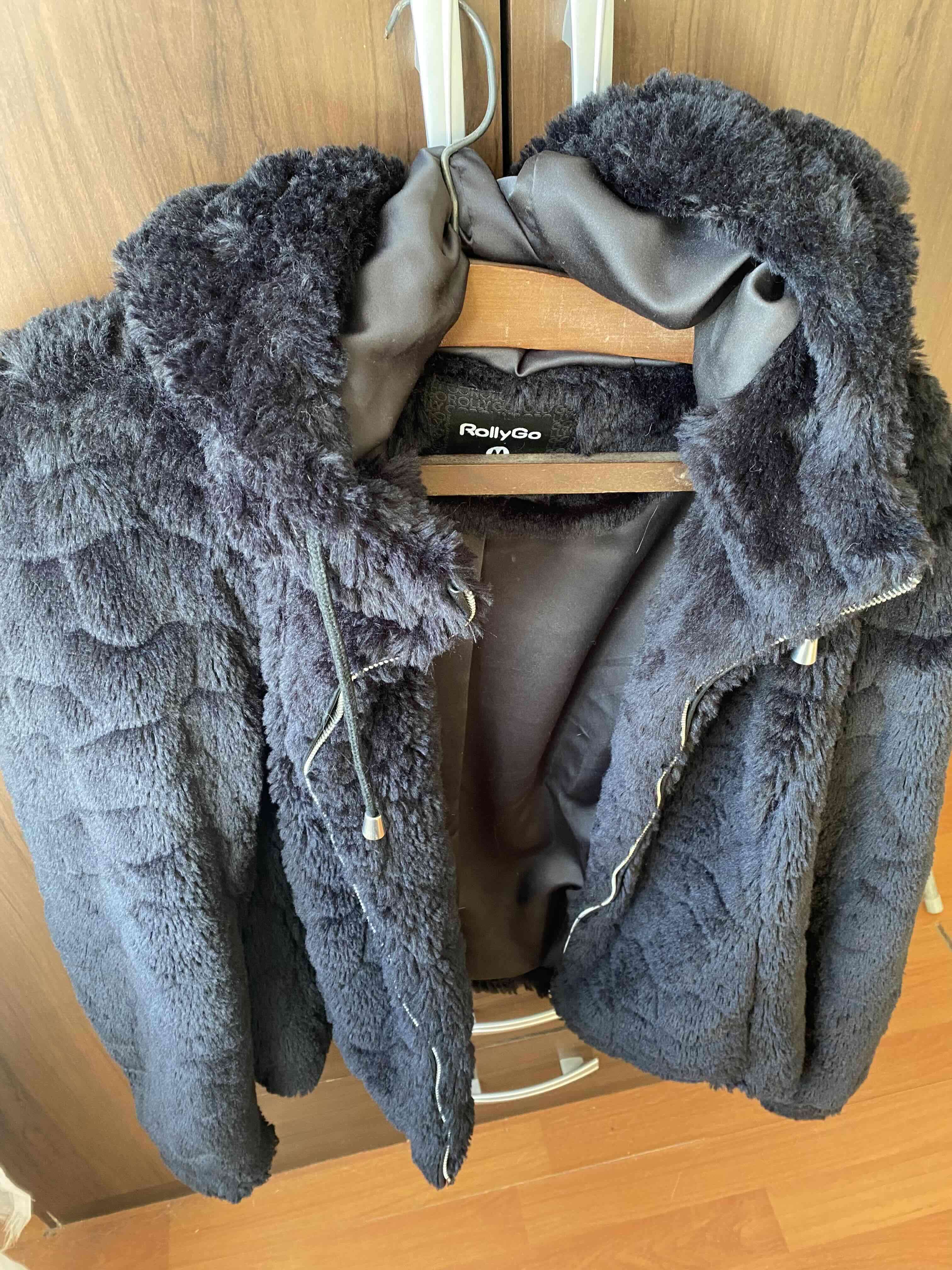 Chaqueta negra con forro tejido y capucha, ideal para invierno. En buen estado, usada levemente.