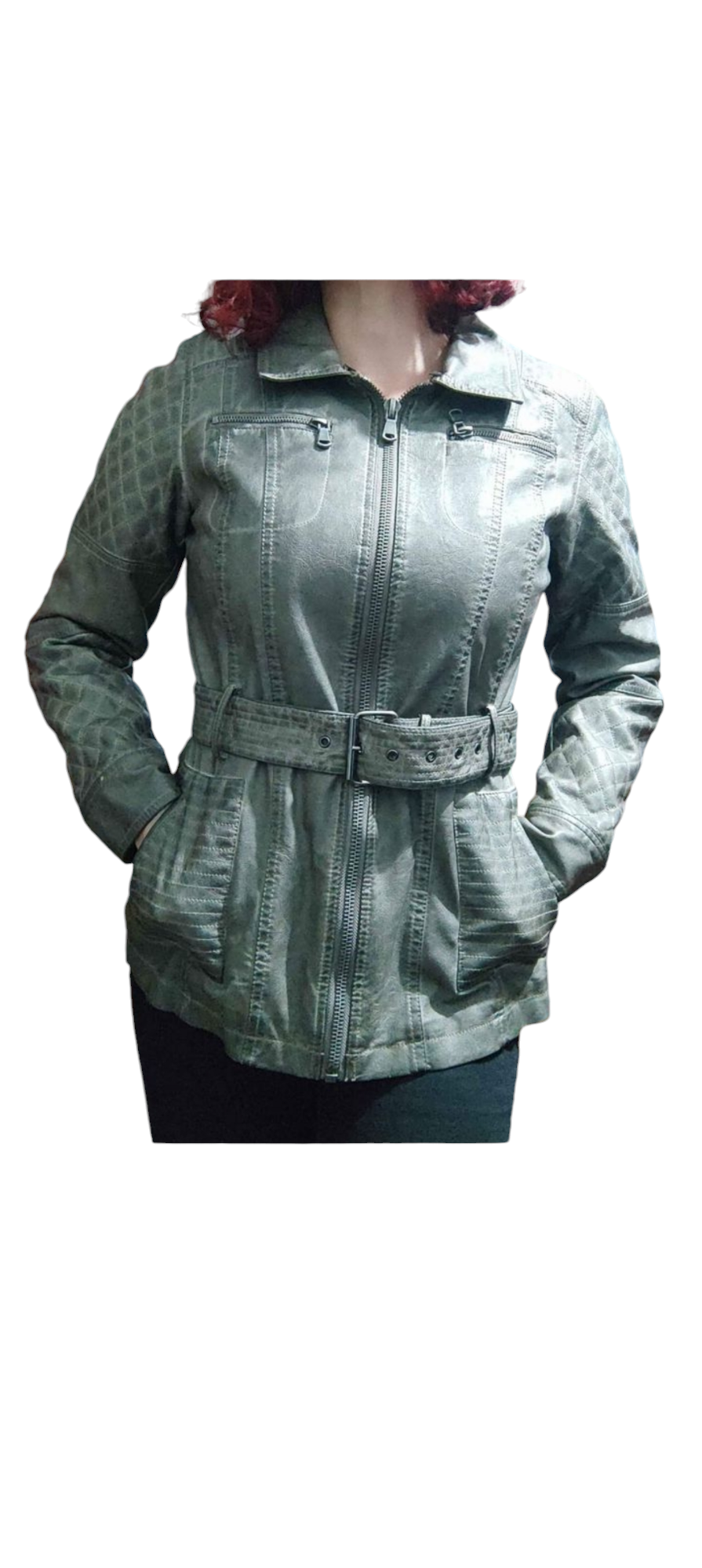 Chaqueta nude estilo casual con cierre y cinturón ajustable. Ideal para días frescos. Efecto "sucio" Talla 36