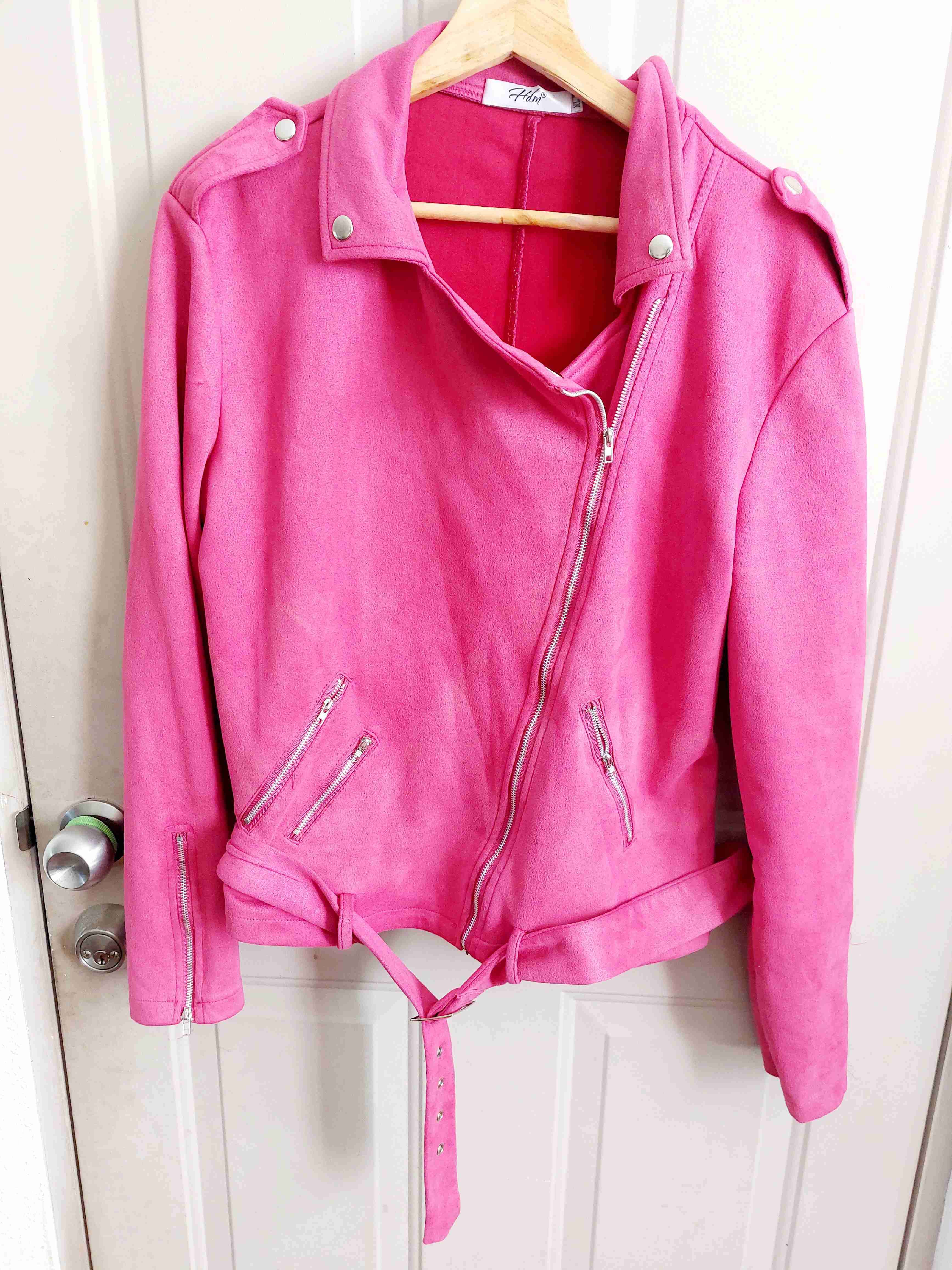 Elegante chaqueta biker rosada, ideal para el otoño. Estado buenísimo con cierres metálicos. Talla xl Impecable