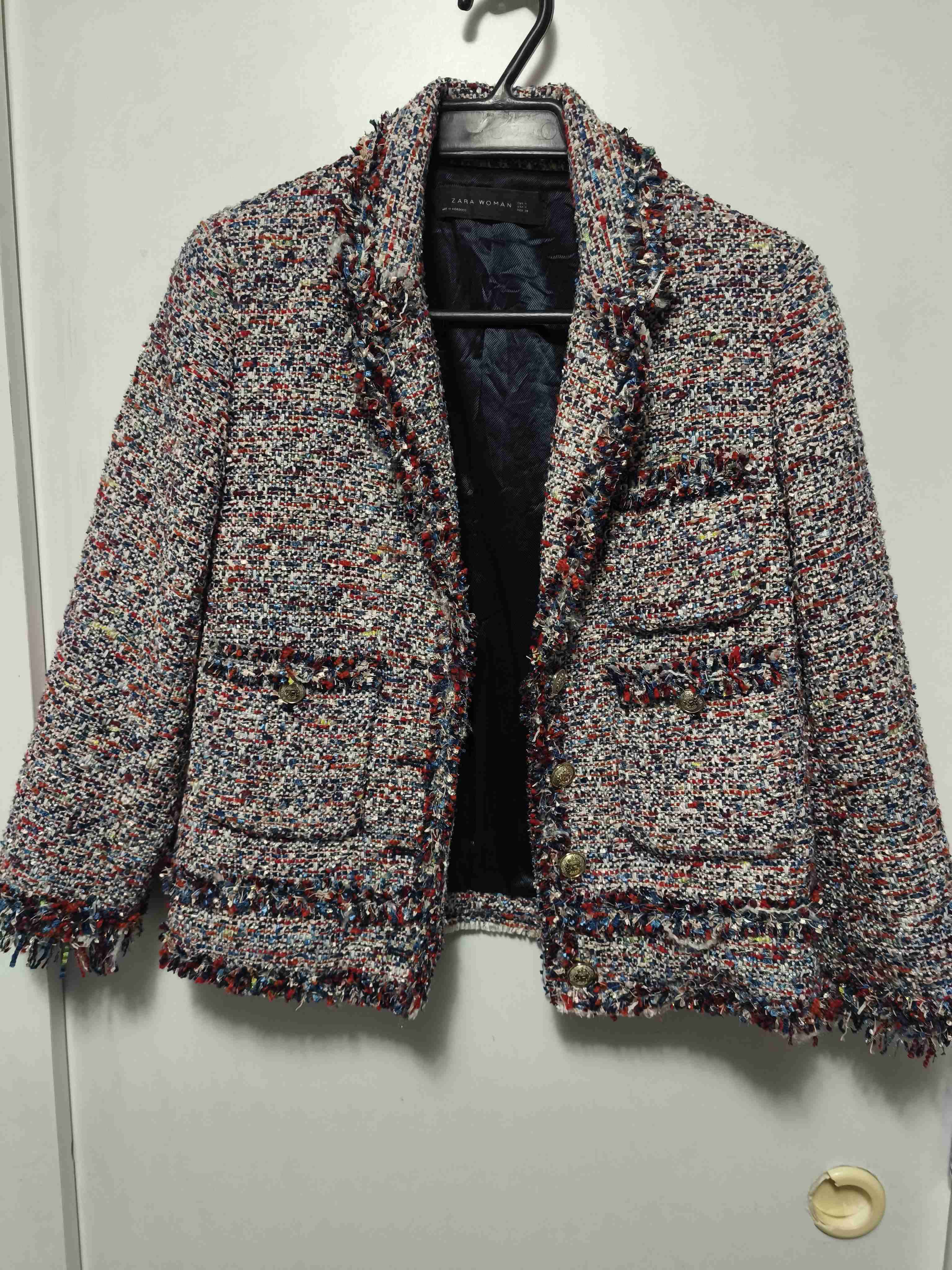 Chaqueta elegante de tejido bouclé en tonos multicolores. Ideal para un look sofisticado. En buen estado general.
