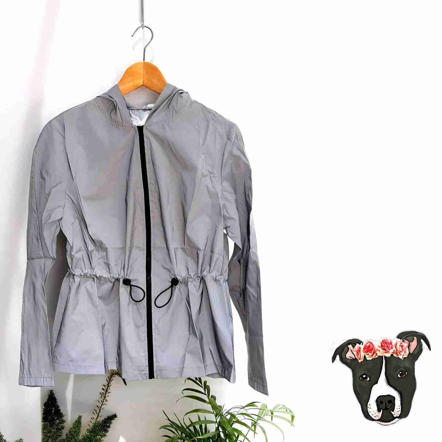 Chaqueta tipo cortaviento 🌬 REFLEX con cintura ajustable. Son geniales. 😁 Al llegarle luz se ve así de luminada en el día igual se ven, pero más leve. Foto 📸 sacada con flash. Talla XS/S Medidas: Pecho 102cms Largo 62cm Talla S/M Medidas: Pecho 106cms Largo 64cms