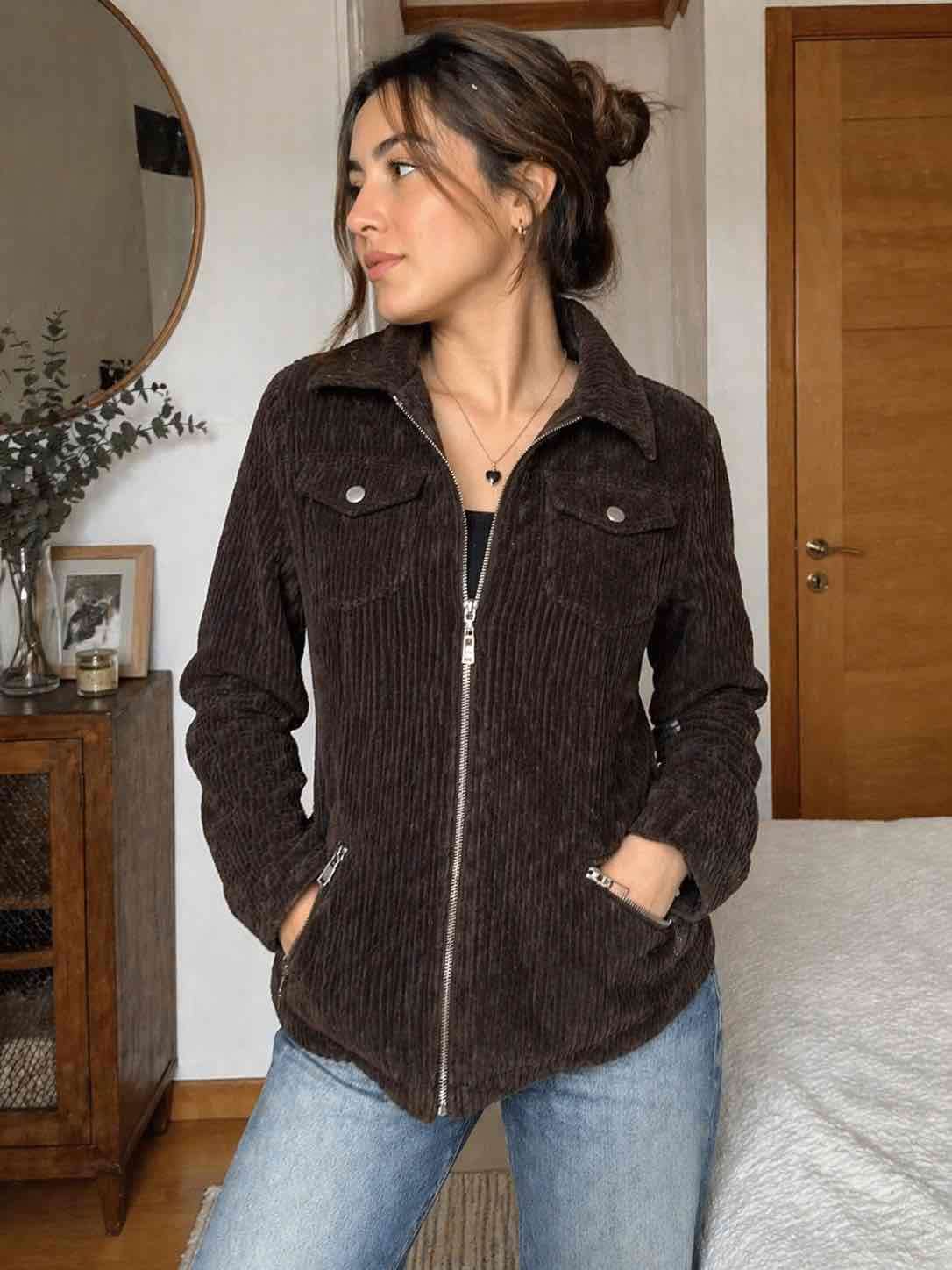 Chaqueta tipo cotelé café | Talla S/M 🤎 Bolsillos con cierre Ancho: 50 Largo: 65 Excelente estado