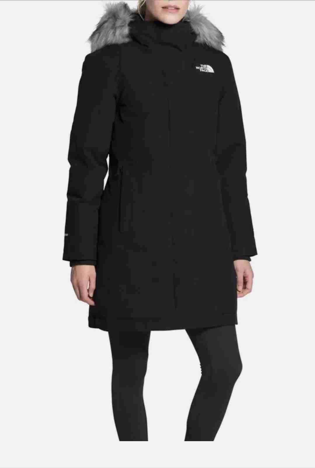 Parka negra con capucha de piel sintética desmontable, densidad 600. Espectacular para el invierno, repelente al agua y nieve, excelente estado. Se vende solo por no uso ya que cambié talla. Se recomienda para M y S normal.